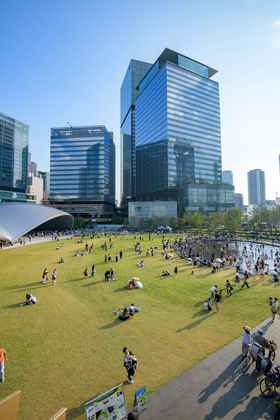 グラングリーン大阪は、西日本最大のターミナル駅「JR大阪駅」前に、約45,000平方メートルの面積を誇る都市公園「うめきた公園」、オフィス、ホテル、商業施設、中核機能施設、分譲住宅を有する複合施設です。「“Osaka MIDORI LIFE”の創造」~「みどり」と「イノベーション」の融合~を計画コンセプトに、人々のQOL向上や自己実現の機会創出、企業の新しいサステナブル推進活動やイノベーション創出など、新しい価値を共創するまちとして2024年9月に先行まちびらきを迎えており、2025年3月に南館がグランドオープン予定です。