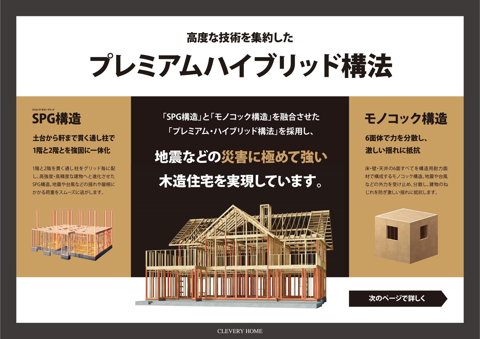さらに、実物大振動実験において阪神淡路大震災の2倍の揺れにも耐えた「プレミアム・ハイブリッド構法」を標準採用。