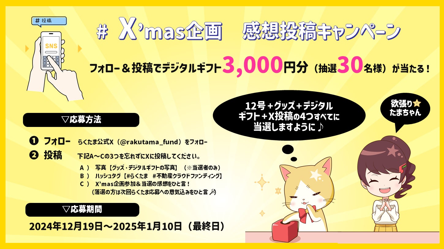 総額100万円分のデジタルギフト&60個のグッズが当たる!『年に1度のX'mas感謝祭』を開催!今からの新規登録でも間に合う!らくたま12号に応募してX'masプレゼントを当てようキャンペーン!