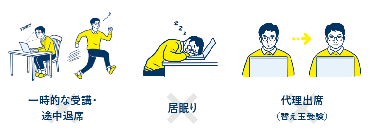 同一人物が、パソコン・タブレット端末・スマホなどの複数の端末で、 同時ログイン、異なる講義を同時に受講することを防止します。