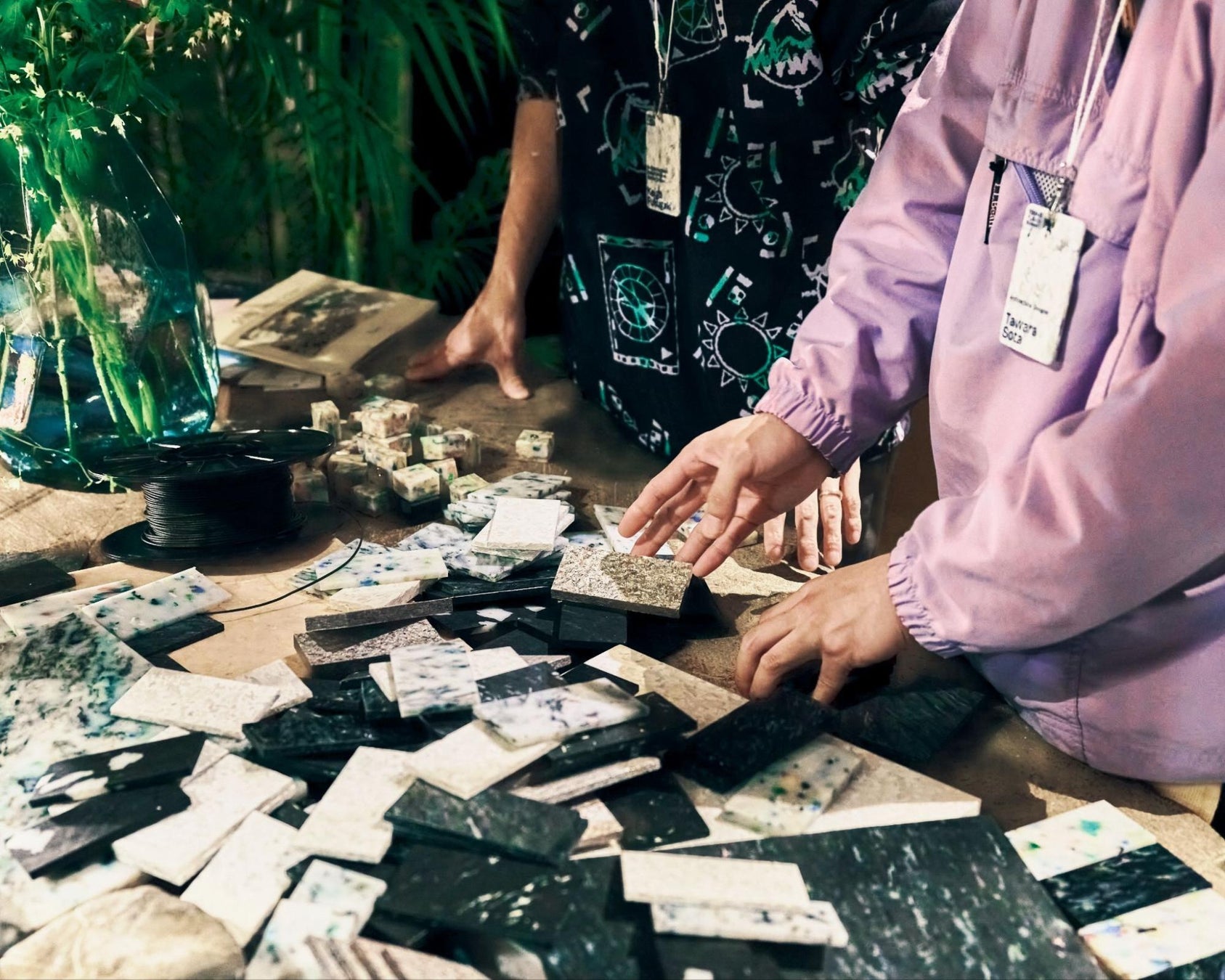 本イベントには、次世代の建築家やクリエイター約70名が参加。REMAREが開発するリサイクルプラスチックのサンプルに直接触れながら、素材の特性や可能性を探る機会となりました。