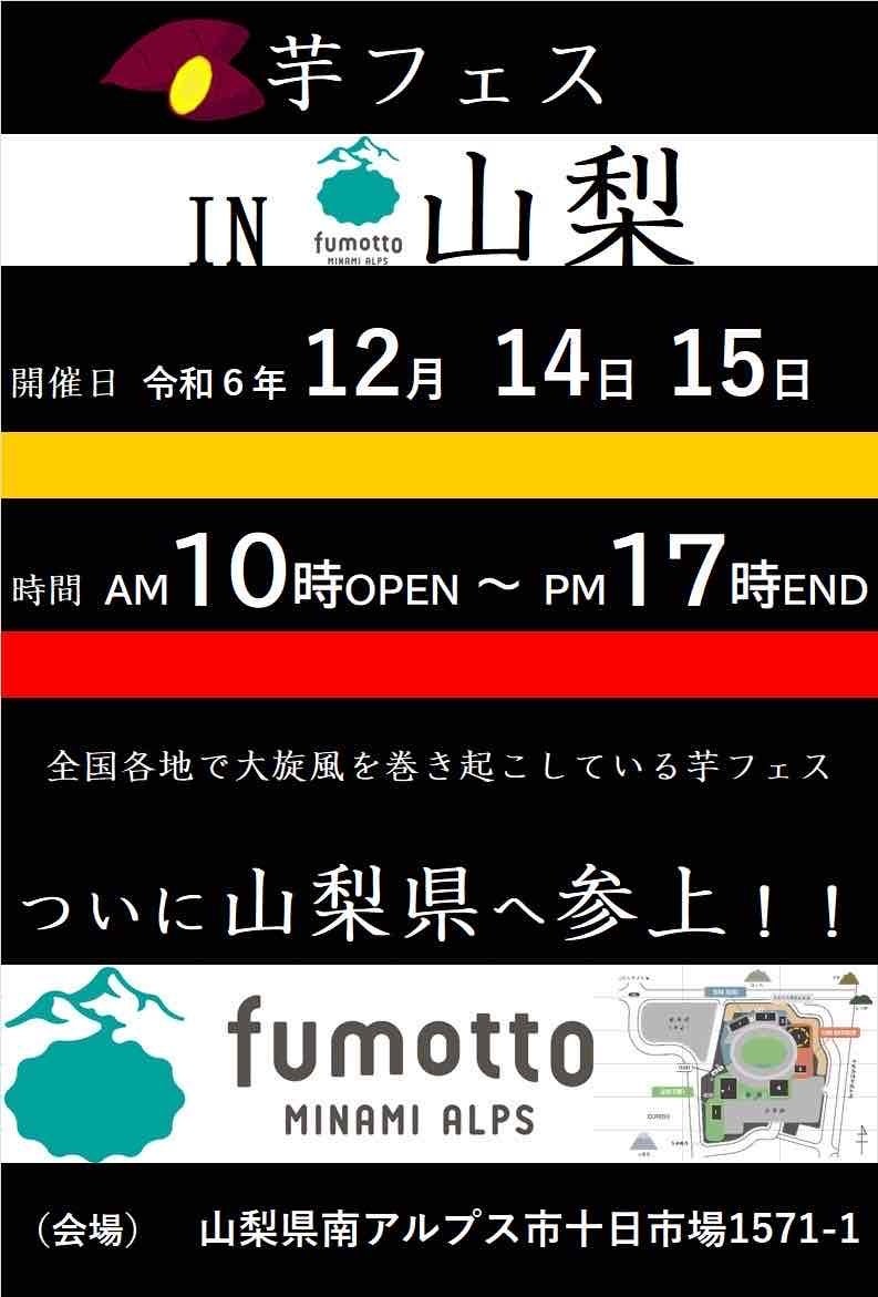 株式会社ロトが主催する「第1回芋フェス!IN fumotto 山梨」が、2024年12月14日15日、fumotto南アルプスでの開催が決定しました。