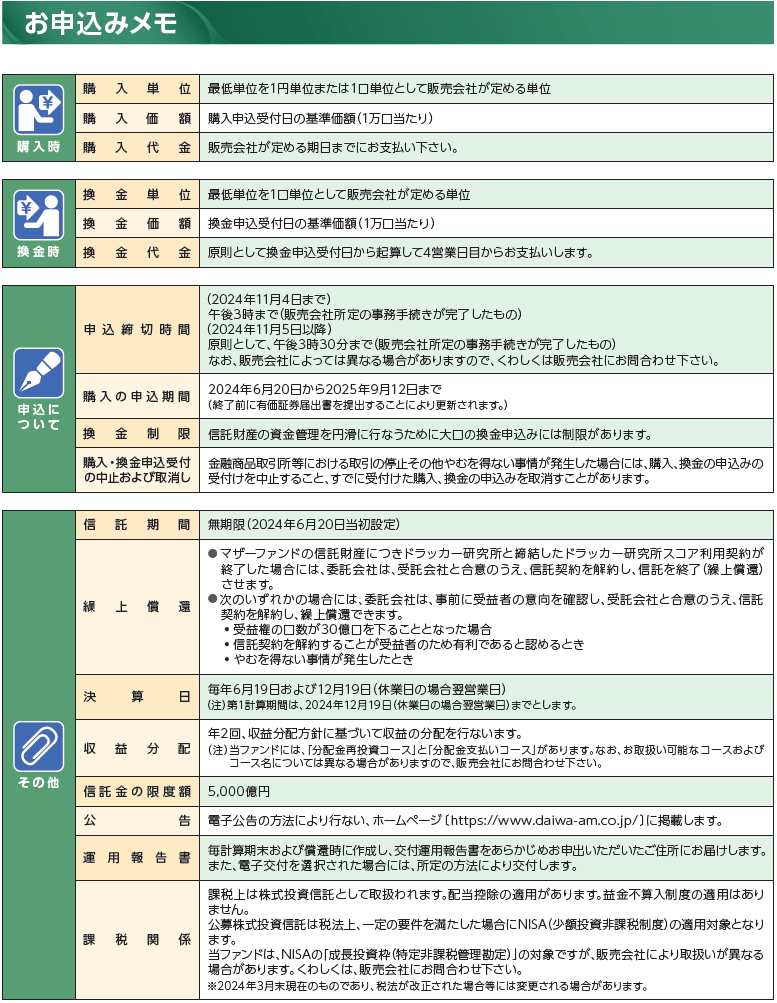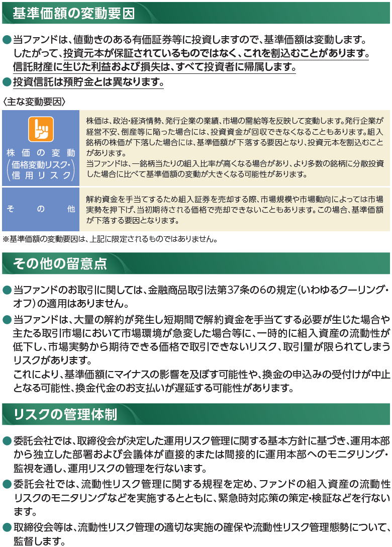当ファンドのお申込みにあたっては、販売会社よりお渡しする「投資信託説明書(交付目論見書)」の内容を必ずご確認のうえ、ご自身でご判断ください。