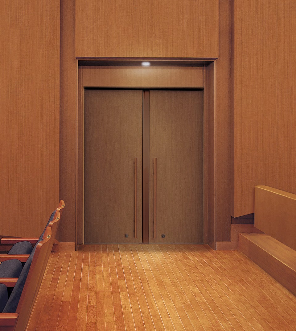 遮音等級T-3を確保し、ホール向けドアとして劇場やコンサートホールなどの客席出入口に設置いただけます。
