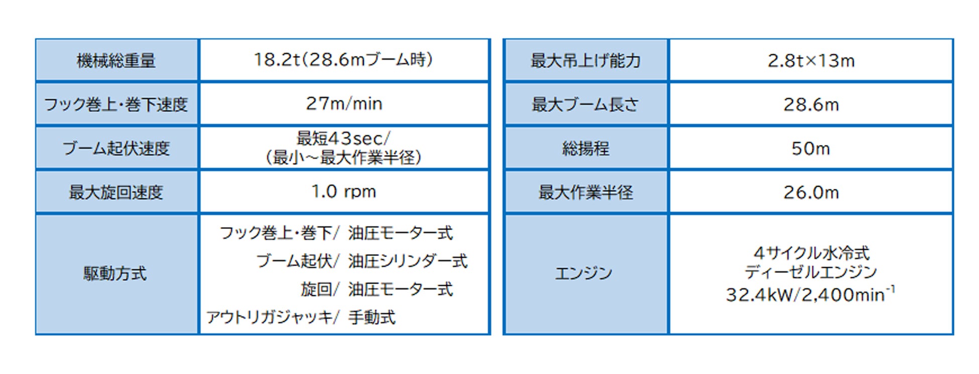 こうした状況を踏まえ、当社は新型ジブクレーン「CSH36-6」を開発いたしました。本機は、深礎基礎工事における残土の排出や資機材の運搬に使用される機種です。従来機の作業性能を継承しながら、アウトリガー、ロワーフレーム、パワーユニット、運転席ユニットを全面的に刷新しました。これにより、運搬や設置が困難な山岳地や傾斜地の現場において、組立・分解の効率化、作業性・整備性の向上に加え、クレーン作業におけるさらなる安全性の向上を実現しています。