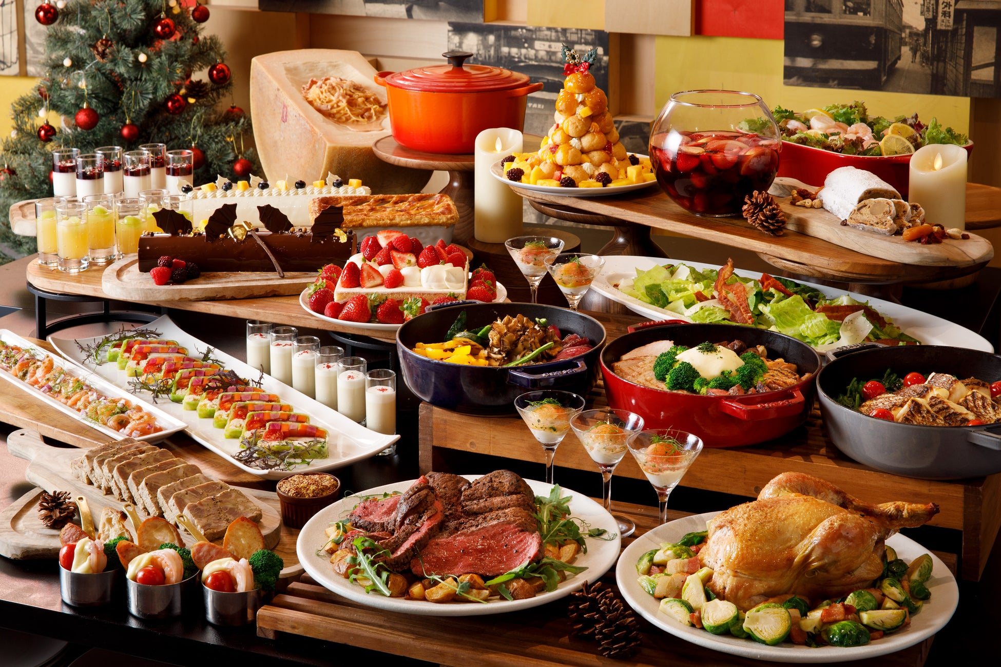 デザート:苺のショートケーキ / ブッシュドノエル 洋梨とストロベリーフロマージュ / ブッシュドノエル チョコレートとキャラメル / クランベリーゼリー / ティラミス / 洋梨のタルト / バームクーヘン・キャラメリゼ / ブレッドプティング / シュークリームツリー / フルーツサングリア / シュトーレン / 長野県産りんごのジュレ / パンナコッタ ミックスベリーコンポート / クランベリーゼリー