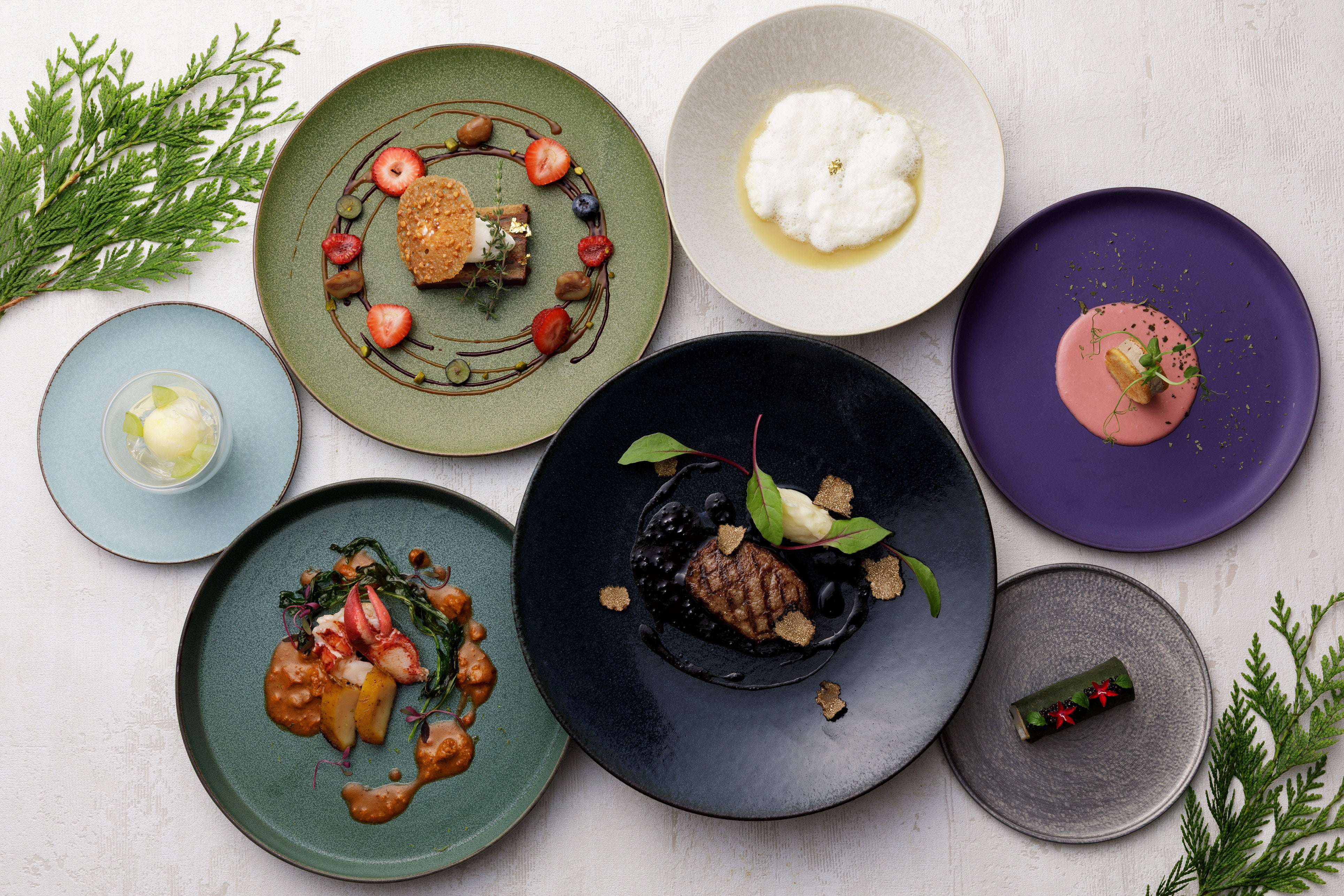 さらに、料理に寄り添うように厳選されたワインペアリング、そして今回のディナーコースのためだけに創作した、美しい見た目と料理とのマリアージュを楽しむノンアルコールペアリングもご用意。お酒を嗜まない方にも、同じ世界観で味覚と香りの旅をお愉しみいただけます。