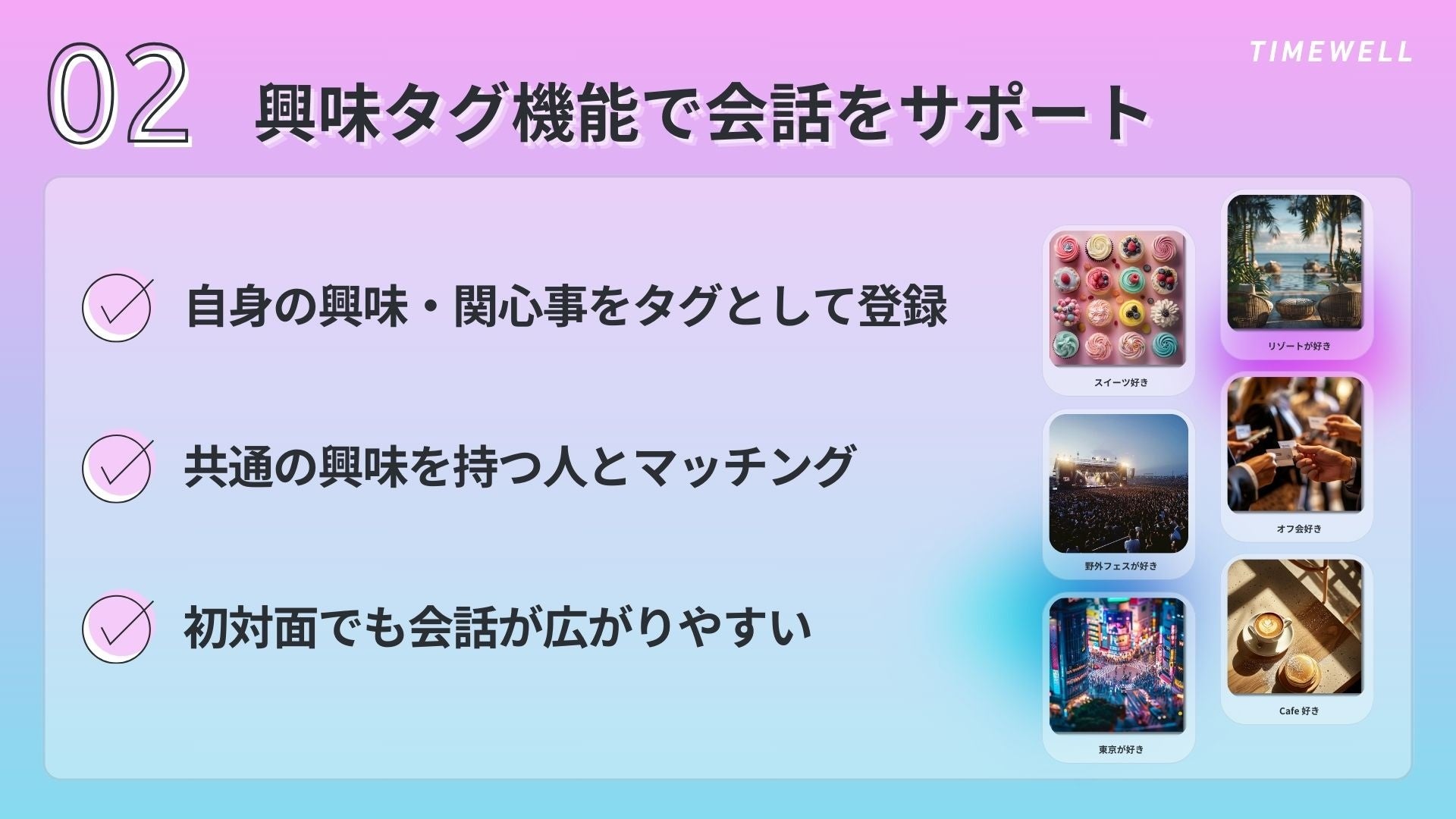 ・興味タグ機能で会話をサポート