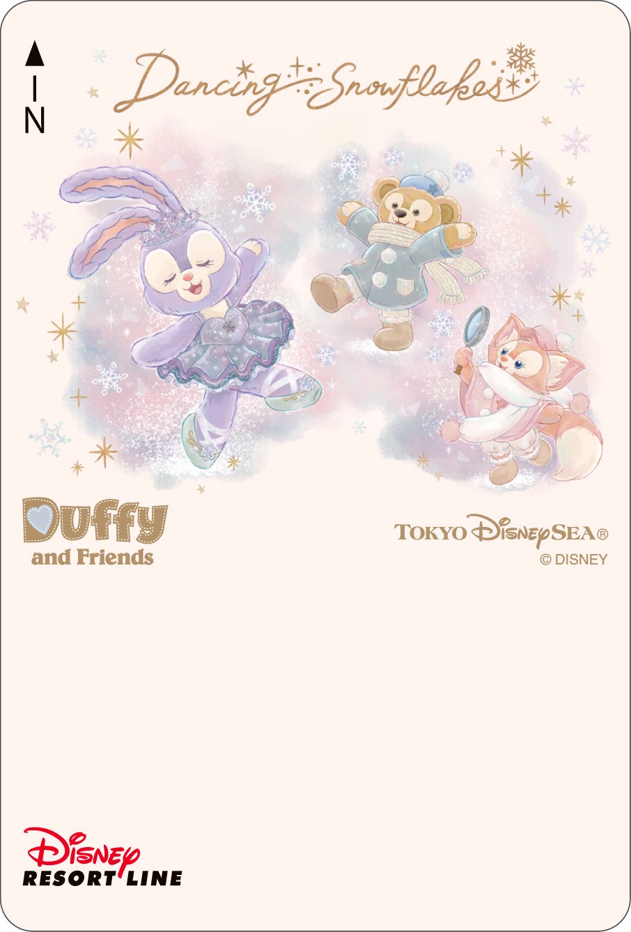 ディズニーリゾートラインでは「ダッフィー&フレンズのダンシング・スノーフレークス」デザインのフリーきっぷを各駅の自動券売機で販売します。