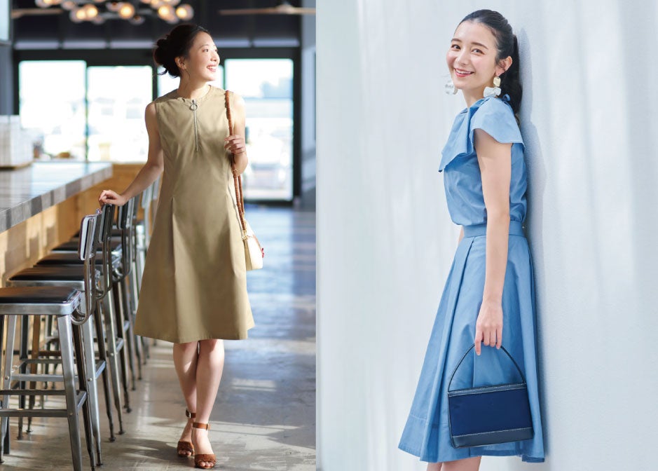 (右)2wayケープ付きブラウス 23,000円/切り替えステッチスカート 25,000円