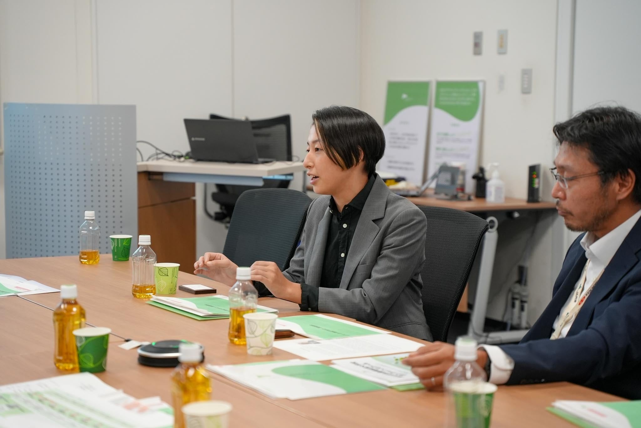 意見交換の場には当法人の職員に加え、当法人が運営する『イノベーター養成アカデミー』の在学生である永山氏・慶野氏も出席し、農林水産省の岩間審議官も同席しました。