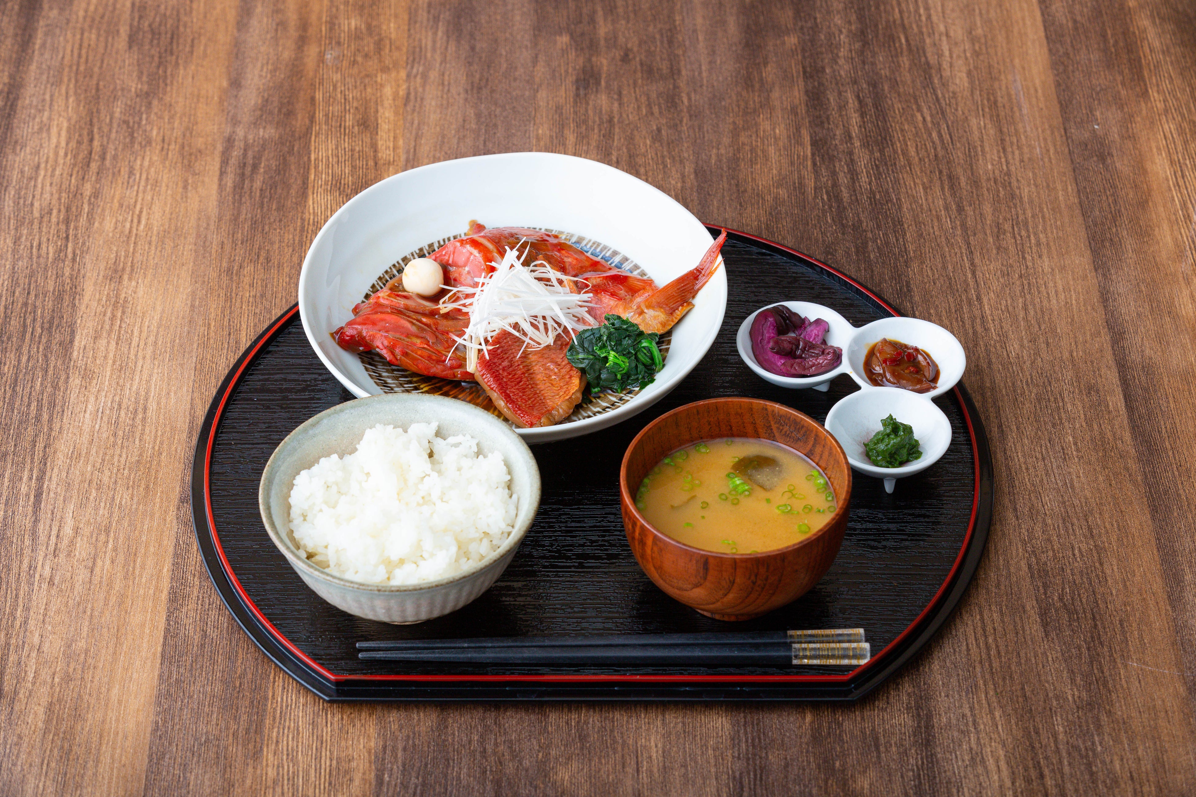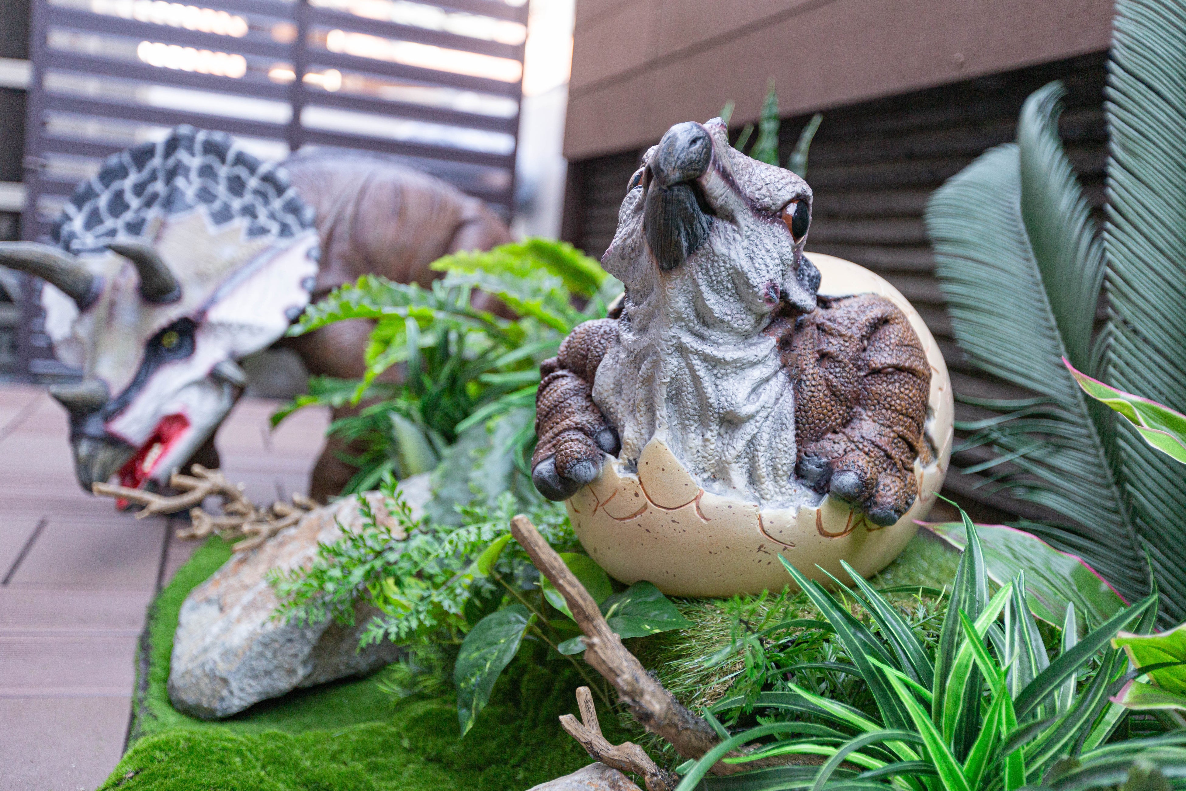 お食事や休憩に使える飲食スペース。半個室もご用意。なんとテラスには恐竜が!?ランチにピッタリのカフェメニューや伊豆直送のメニュー、お子様も大満足のキッズメニューもご用意しております。