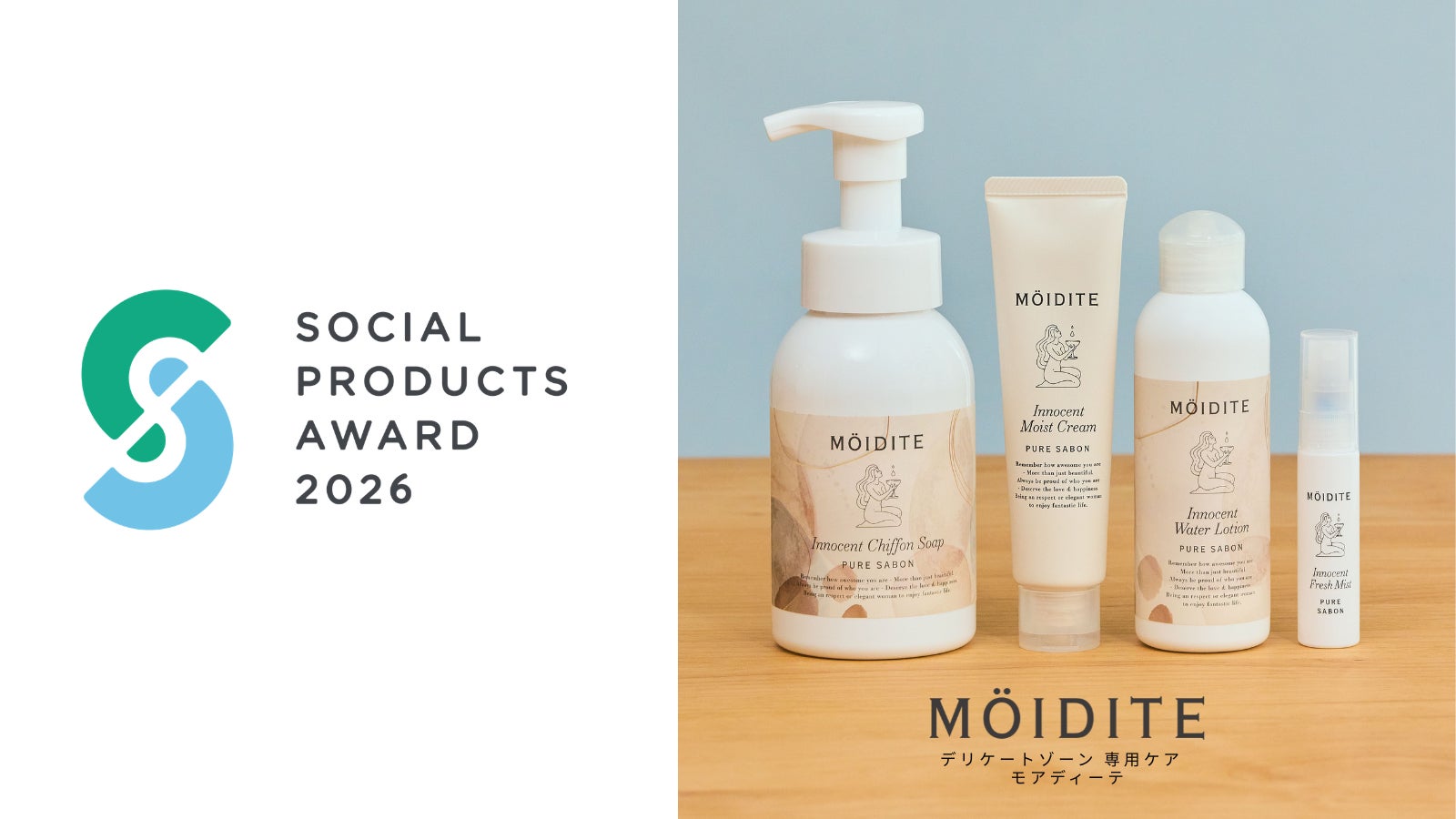 株式会社D-Neeコスメティック(所在地:神奈川県横浜市、代表取締役社長:畑中 秀太)が展開する、デリケートゾーンケアブランド『 MOIDITE (モアディーテ)』が、一般社団法人ソーシャルプロダクツ普及推進協会(所在地:東京都中央区、会長:江口 泰広)が主催する「ソーシャルプロダクツ・アワード2026」において、「ソーシャルプロダクツ賞」を受賞いたしました。同賞は、優れた社会性と商品性を持つと認められる商品・サービスに対して贈られるものです。