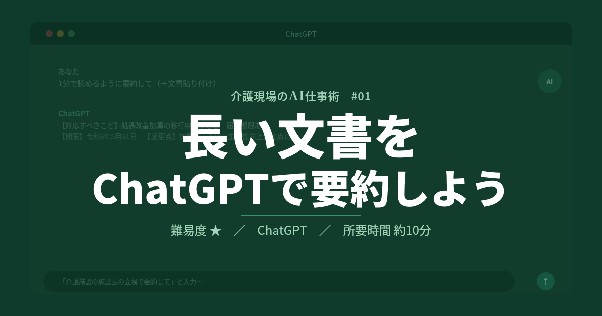 【介護現場のAI仕事術】 第1回: 長い文書をChatGPTで要約しよう