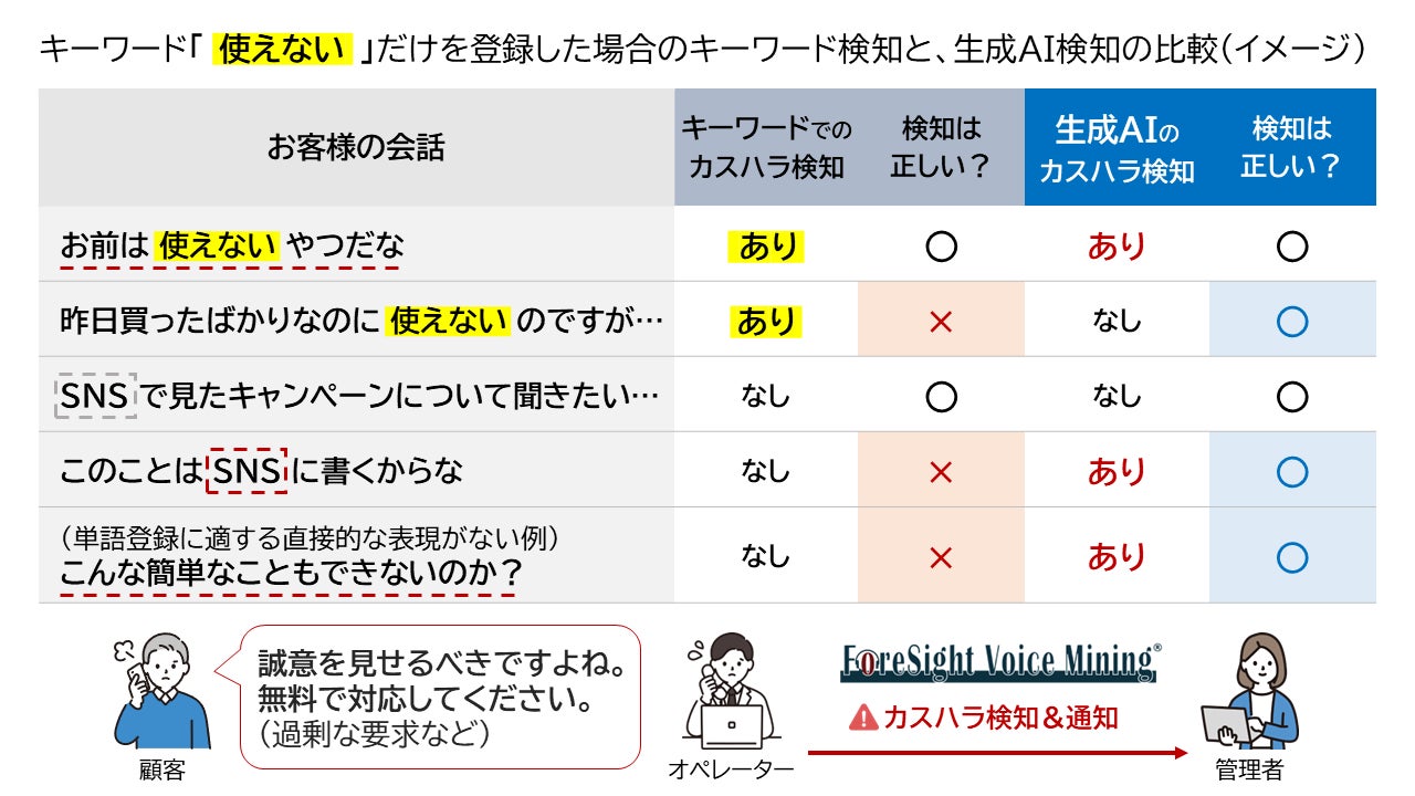 コールセンターAIプロダクト「ForeSight Voice Mining」生成AIを活用したカスハラ検知機能(特許出願中)を年明けに製品化