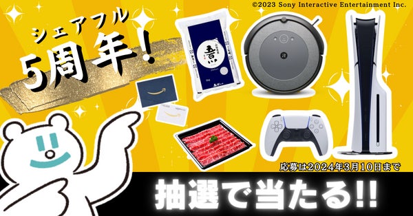 Xをフォローで豪華プレゼント「シェアフル5周年キャンペーン」開催