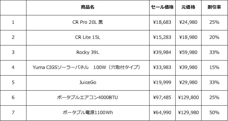 この度のセール対象商品から特におすすめの商品をご紹介します。これからのアウトドアやBBQシーズンに非常におすすめで、防災にも役立つ商品となっております。この機会にぜひお試しください。