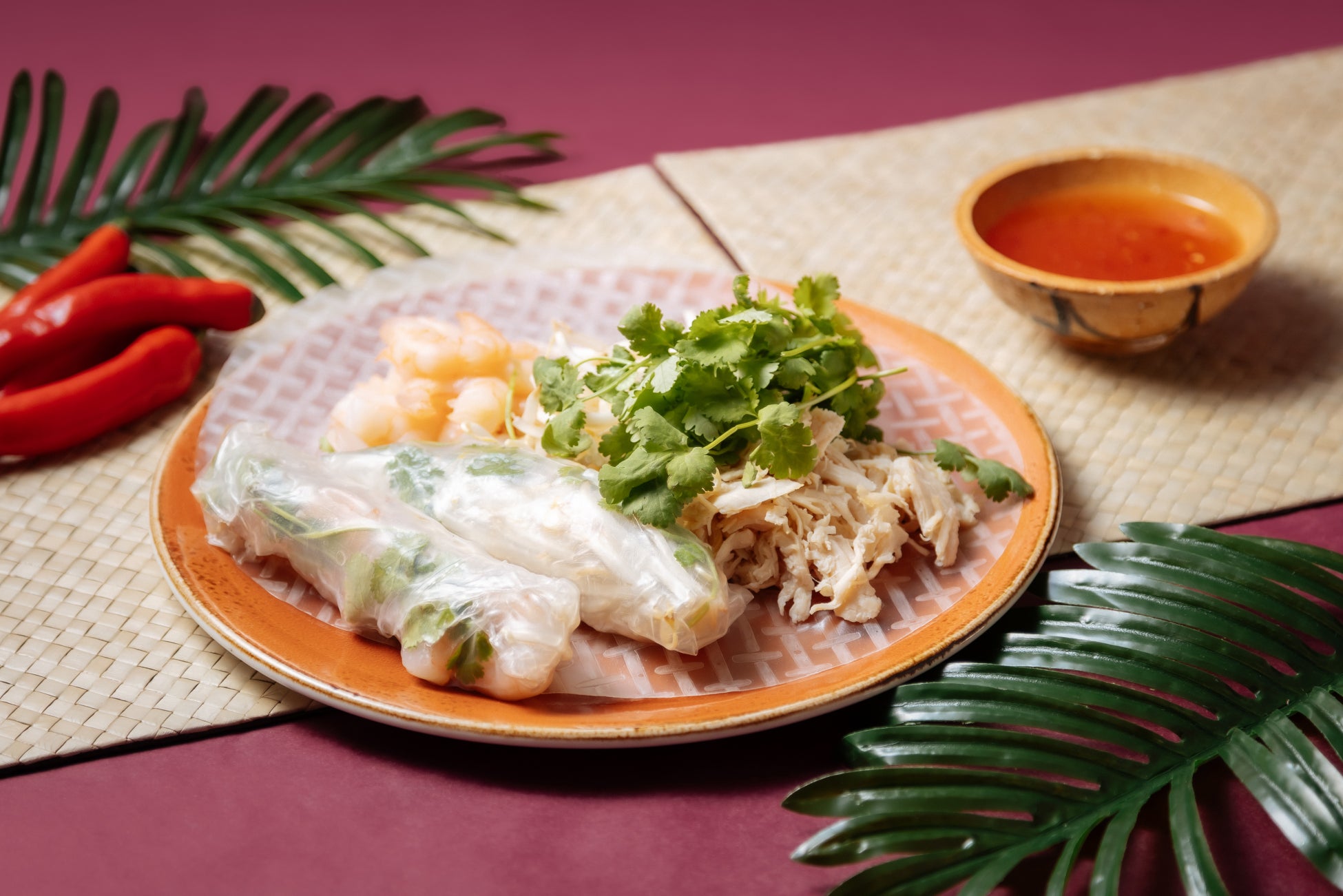 スパイスを纏った大きな肉の塊がインパクト大の「豚バラ肉のスパイシーロースト」(ランチのみ)や「スパイシーグリルのロースト」(ディナーのみ)は、柔らかい肉の食感と鼻に抜けるスパイシーな香り、ジューシーな味わいで人気になること間違いなしの注目メニュー。定番の「生春巻き」は、お好みの具材選びから、ご自身で巻いて仕上げるまでの体験が楽しめ、The Cafeが推す “体験型”のメニューになっております。