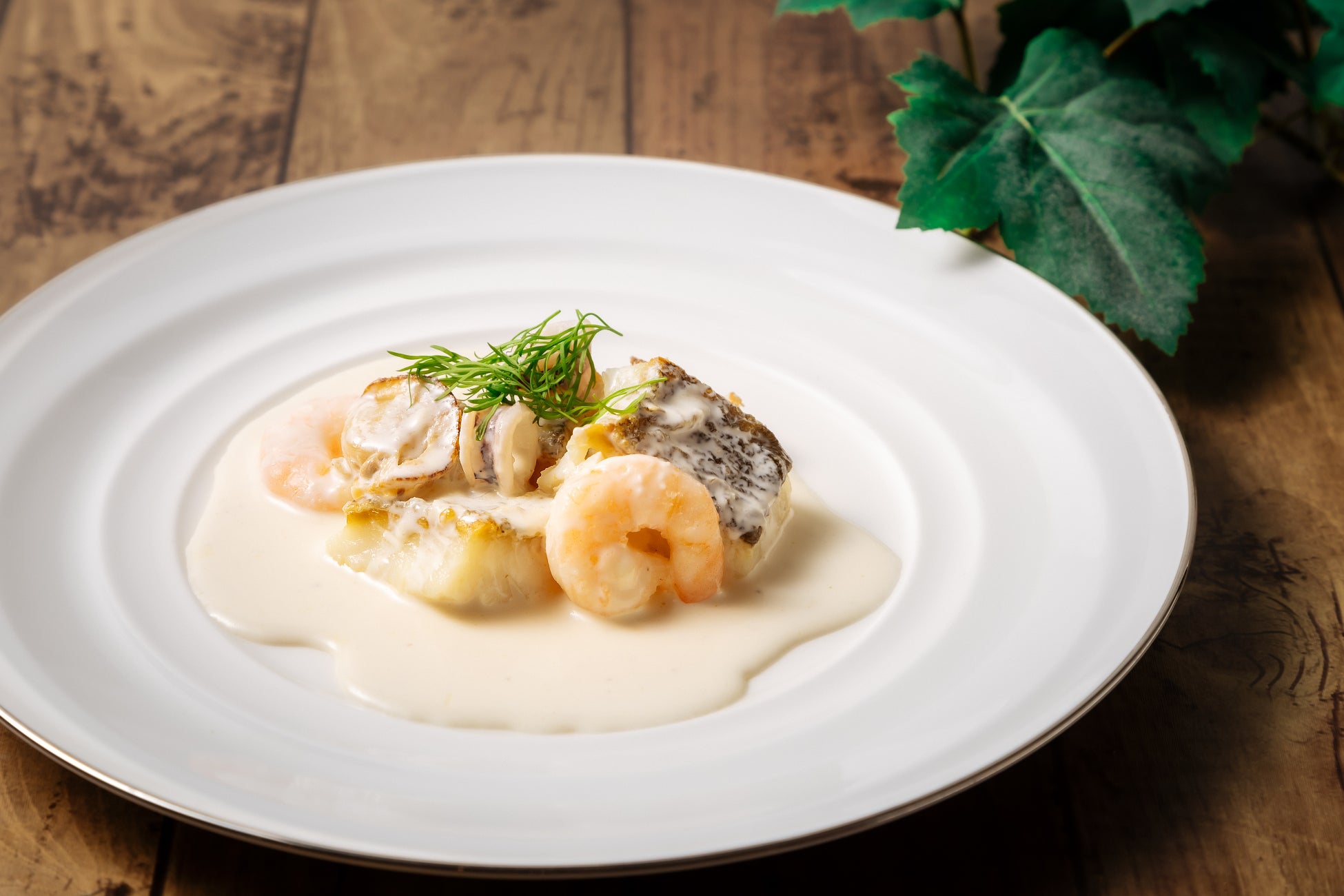 日本では赤いスープをイメージする事の多いブイヤベース。本フェアでは、酪農が盛んで海流により美味しい魚介に恵まれるフランス北部のブルターニュ地方で食べられている「白いブイヤベース」をご提供。また、「鶏モモ肉のブランケット」や「ブルゴーニュ風赤ワイン煮込み」などフランス料理には欠かせない煮込み料理も並びます。ライブステーションでは、グラナパダーノチーズをふんだんに使用した「トリュフ香るクリームパスタ」や、とろけたチーズと半熟卵のマリアージュが楽しめる「ブルターニュ風ガレット・ド・フロマージュ」をご用意。贅沢で上品なイメージのフランス料理をビストロの雰囲気で、気の知れた方との集まりとして肩肘張らずにお楽しみいただけます。