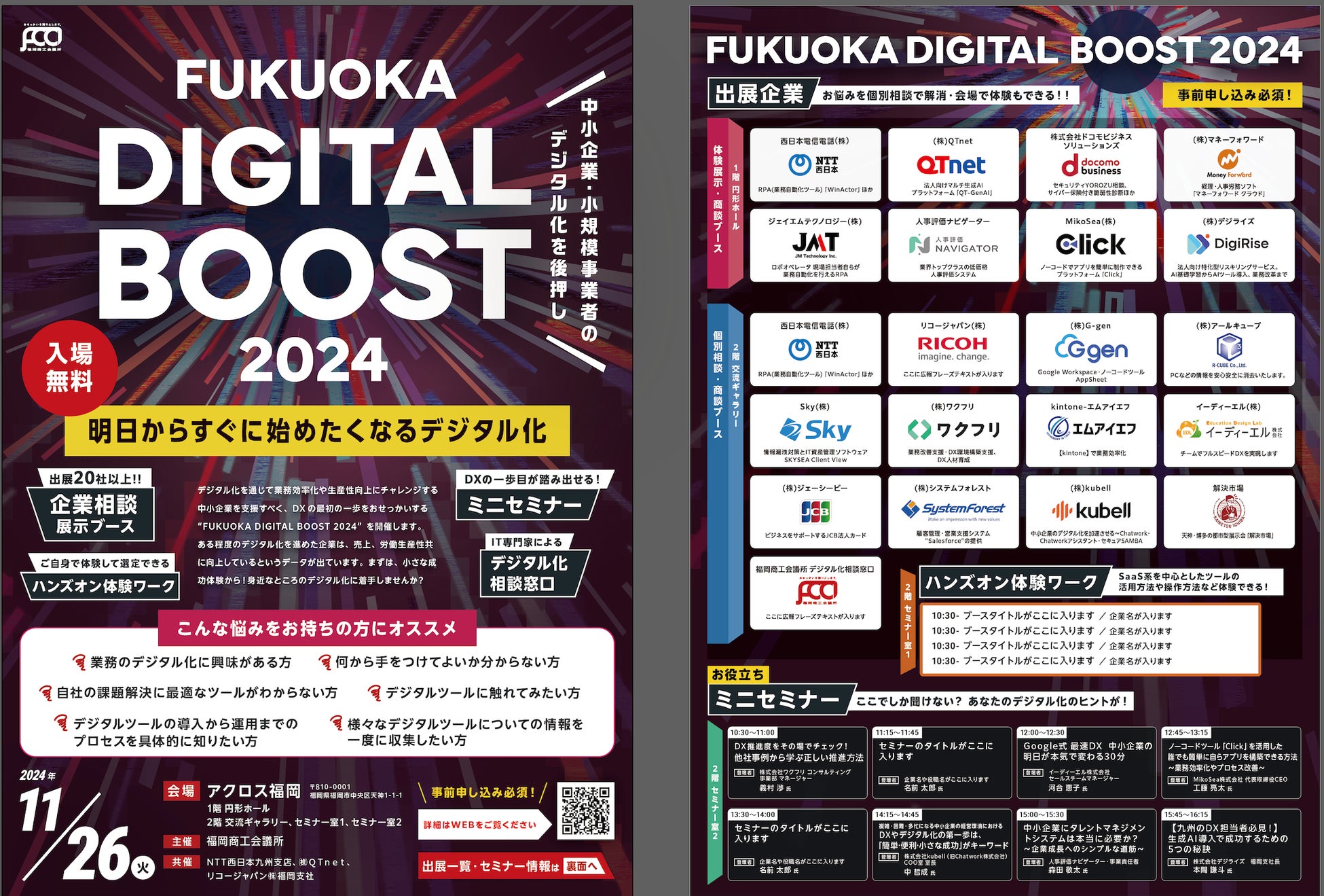 「AIの利便性と感動を全ての人に届ける」をビジョンに掲げる株式会社デジライズ(本社:東京都港区、代表取締役CEO:茶圓 将裕)は、2024年11月26日にFUKUOKA DIGITAL BOOST 2024に出展し、ミニセミナーでは講演を担当します。