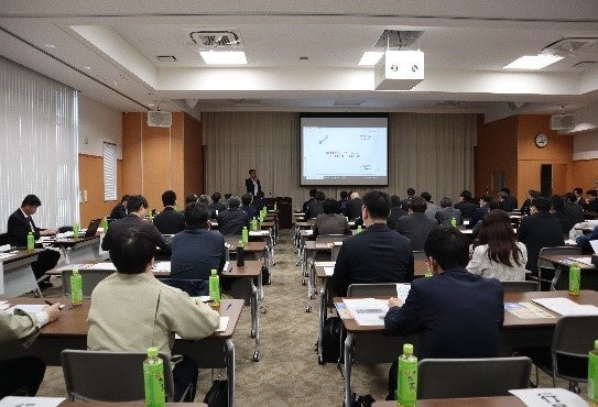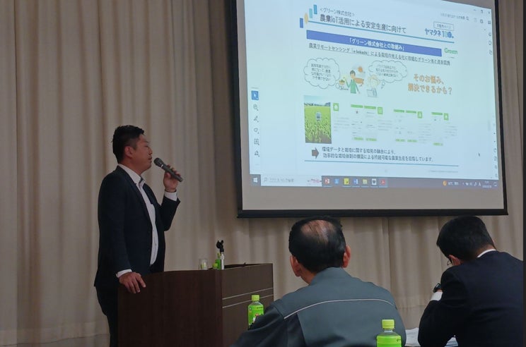 本研修会は、県内の若手農業者の支援プログラムとして山形銀行が運営する「若手農業者の会」が、農業経営の担い手の育成に寄与することを目的として毎年開催する研修会です。2010年に設立された「若手農業者の会」は、現在約540名の会員を有し、当日は約80名が参集されました。会では、他講演企業からも基調講演が行われたほか、山形銀行からは「花卉生産・出荷のDX事例」や農業資材関連企業各社の情報提供がありました。当社からは、施策を紹介すると共に、生産者・農業関連事業者・流通間で課題・情報を持ち寄り課題解決にチームとして取り組むことの重要性をご説明いたしました。