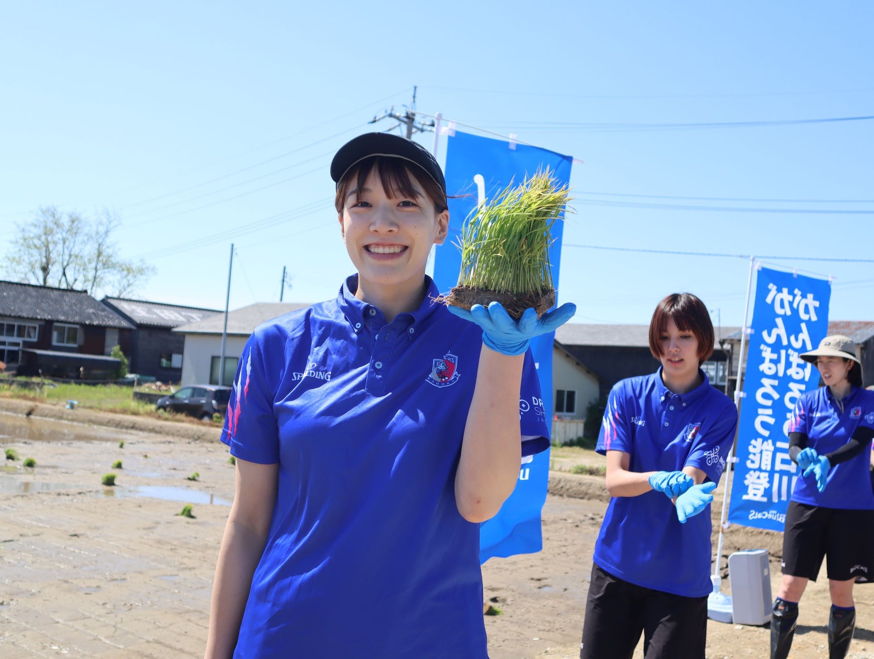 【PFUブルーキャッツ石川かほく】石川県内灘町にて復興田植えを実施