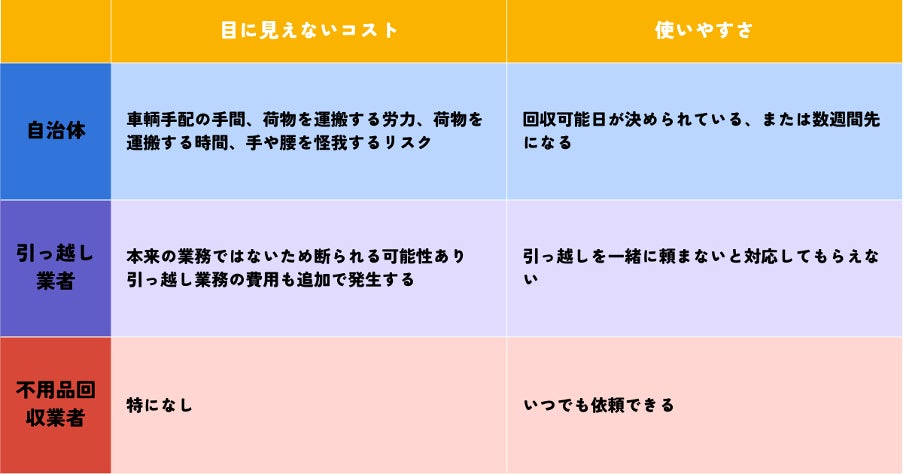 しかし、不用品によっては自治体で回収できない物があり、その際は引っ越し業者や不用品回収業社に依頼することが必要になります。