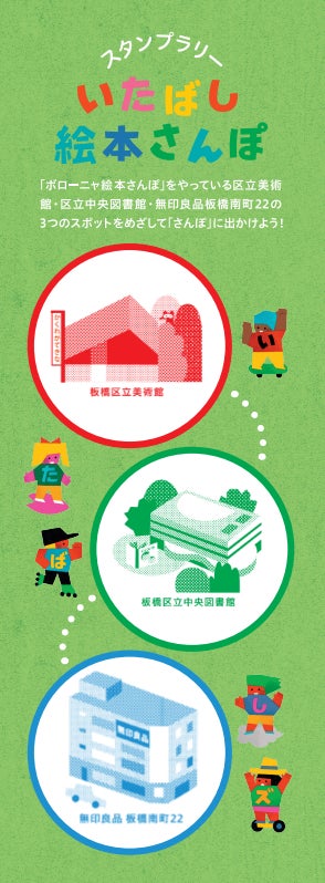 「絵本のまち板橋」を区のブランドとして展開、推進している板橋区は、「無印良品 板橋南町22」 と共催で7月19日から9月1日までの間、「無印良品 板橋南町22」・区立美術館・区立中央図書館の3か所を巡るスタンプラリー「いたばし絵本さんぽ」を開催しています。