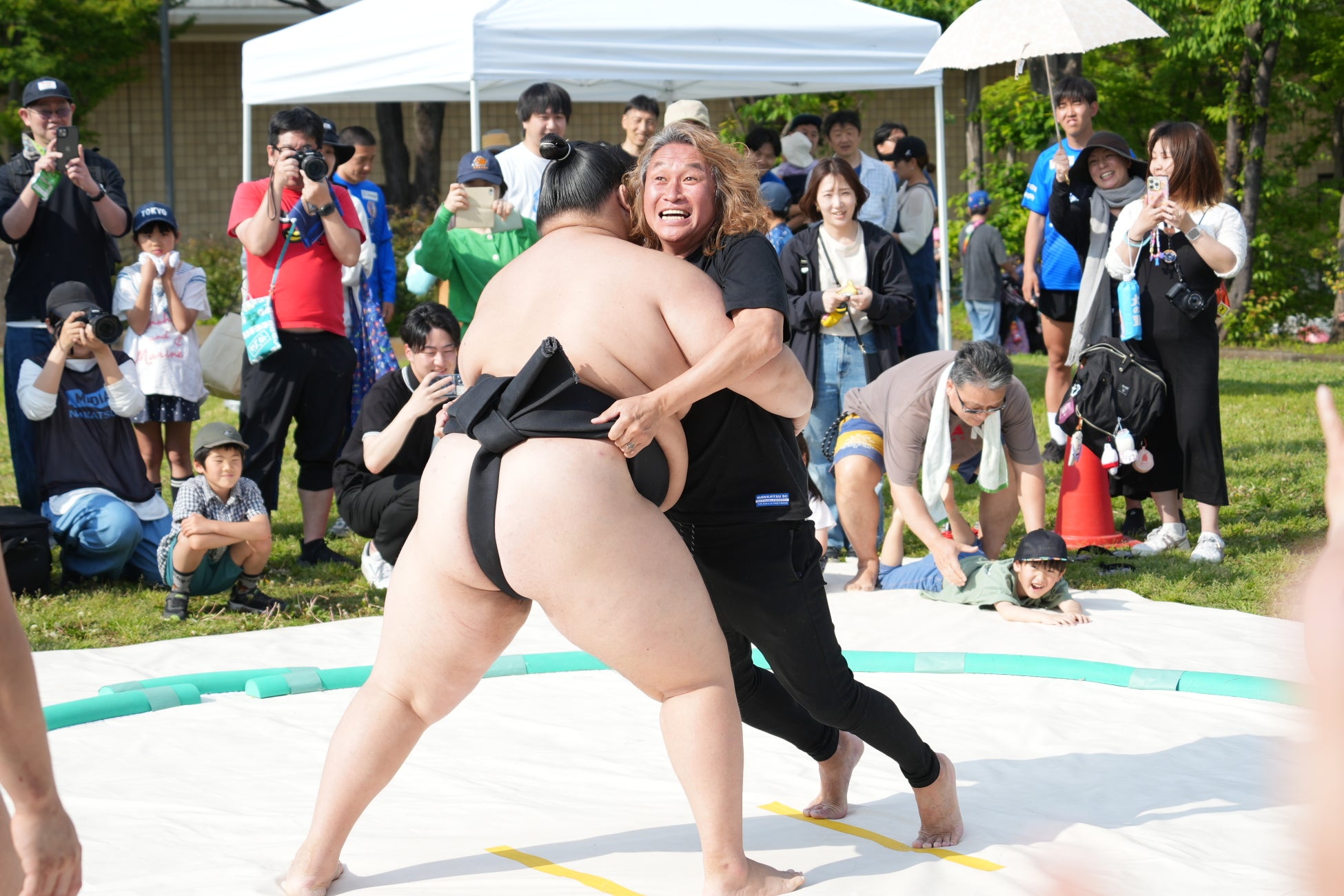また、大島親方による赤ちゃん抱っこ記念撮影や、南葛SC事業本部長“野人”岡野雅行氏の登場による手押し相撲対決など、会場内は終始活気にあふれていました。