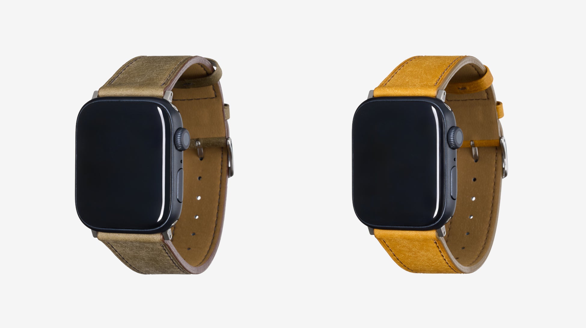 プエブロレザーは、表面を手作業で毛羽立たせることで、柔らかな触感と奥行きのあるマットな表情を生み出します。使うほどに色艶が深まり、荒地のような表面に徐々に輝きが現れていく“育つ革”として知られています。その自然な変化を、Apple Watchのスタイルに品よく落とし込んだのが本モデルです。