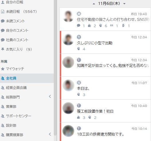 橋本組には、約20年前から続く社内SNSがあり、社長を含む全社員が毎日「日報」を投稿しています。