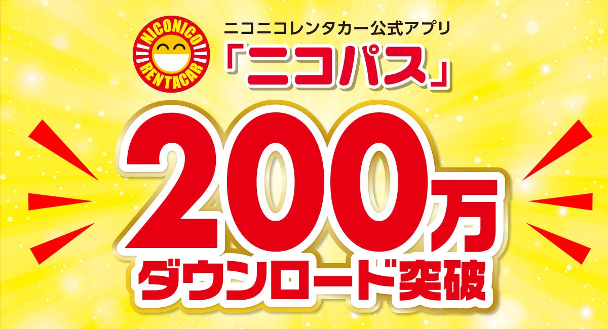 ニコニコレンタカー公式会員専用アプリ「ニコパス」が200万ダウンロードを突破いたしました。