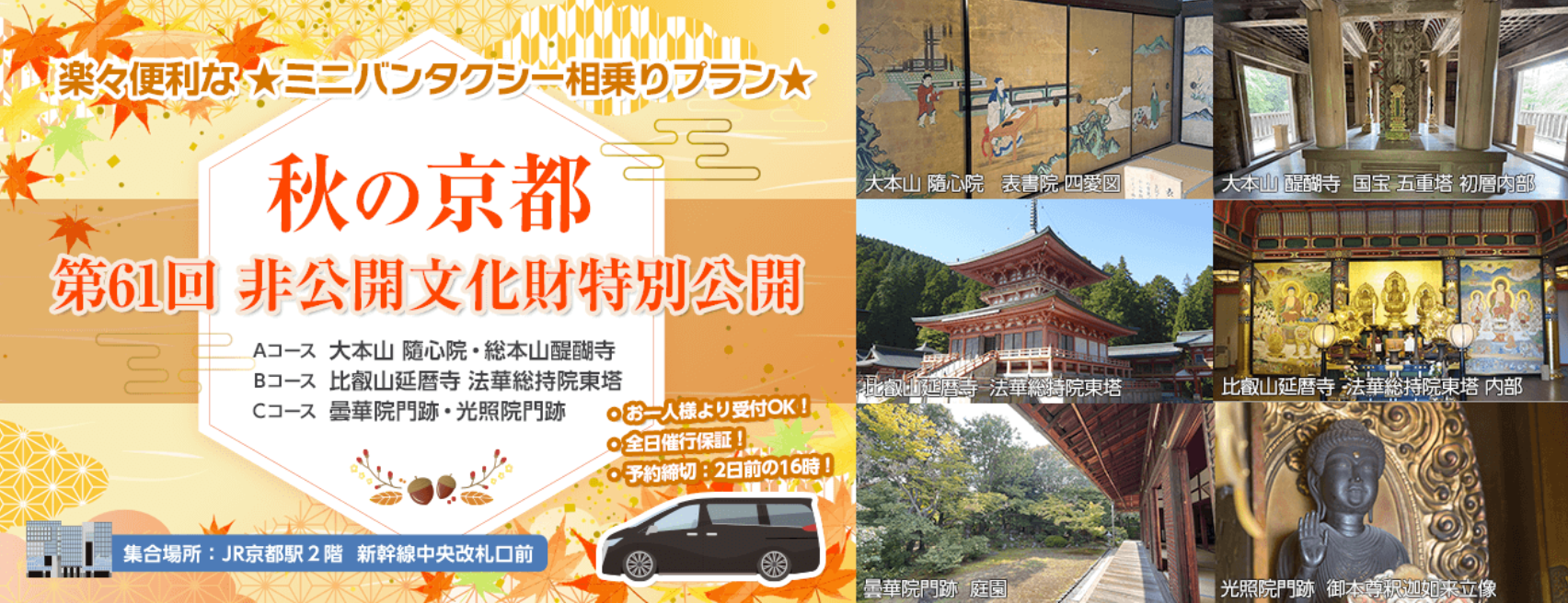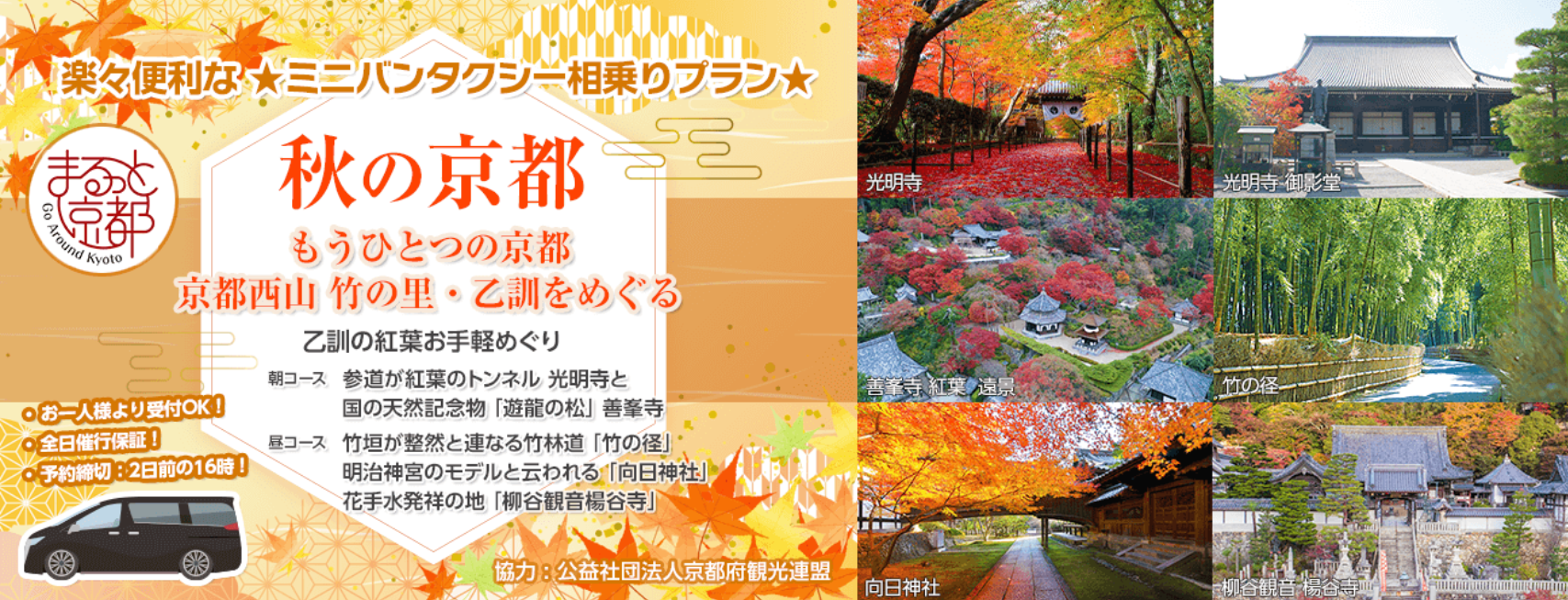 これまで四季に合わせ観光プランを作成・販売してまいりましたが、2025年の秋から冬にかけてのシーズに併せ京都市内(一部京都市外)から京都市内または京都府内にある紅葉の名所を巡るプラン、2026年1月から始まる「第60回 京の冬の旅」で行われる文化財特別公開箇所を巡るタクシープランも販売いたします。
