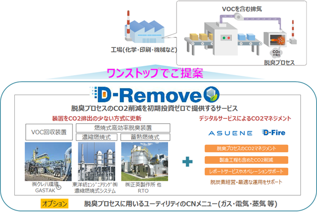 脱臭プロセスのCO2削減を初期投資ゼロで提供するサービス「D-Remove」の開始