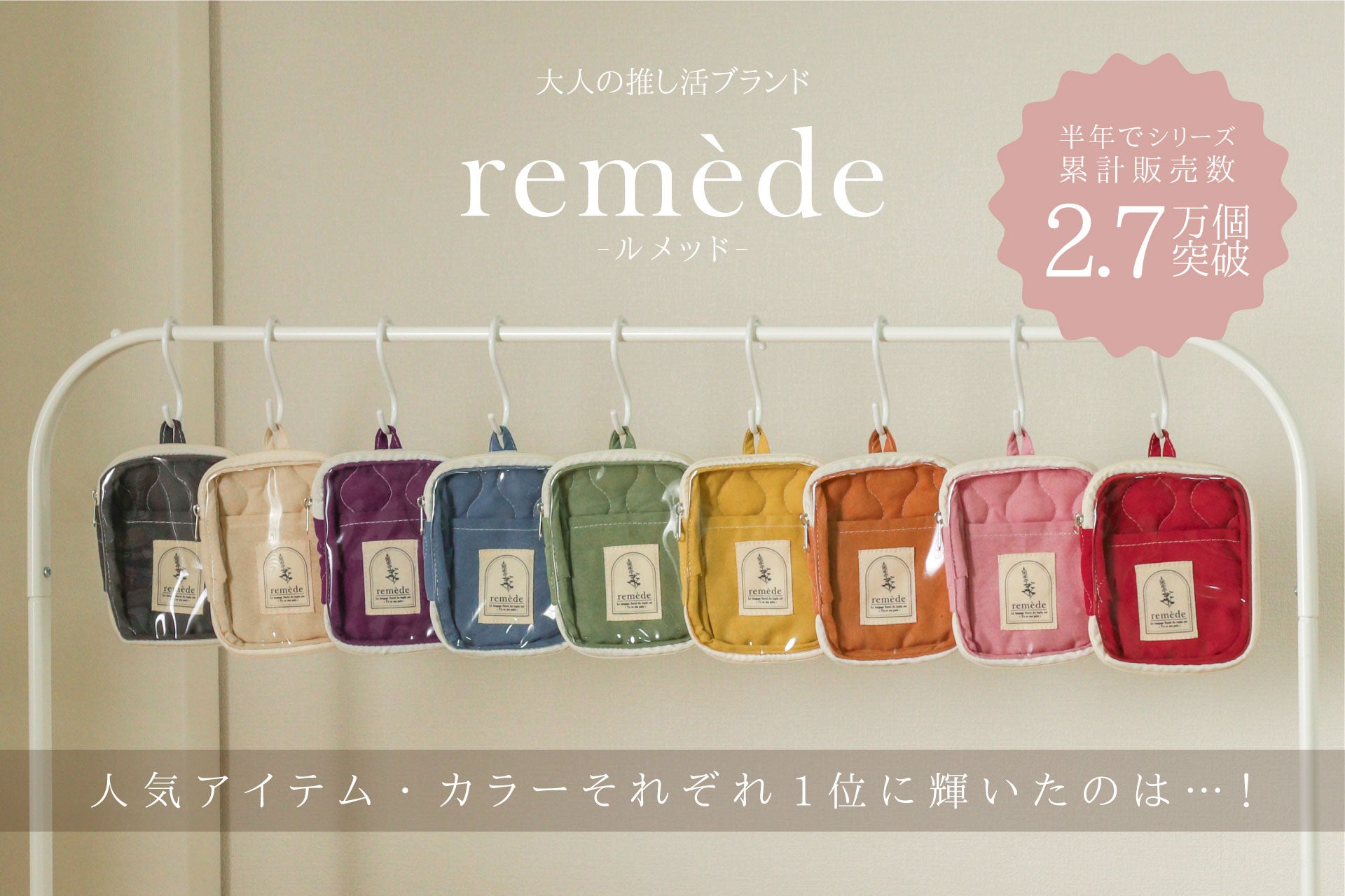 大人推し活ブランド「remède-ルメッド-」発売から半年で累計販売数2.7万個を突破!アイテム・カラーそれぞれの人気ランキングを発表!