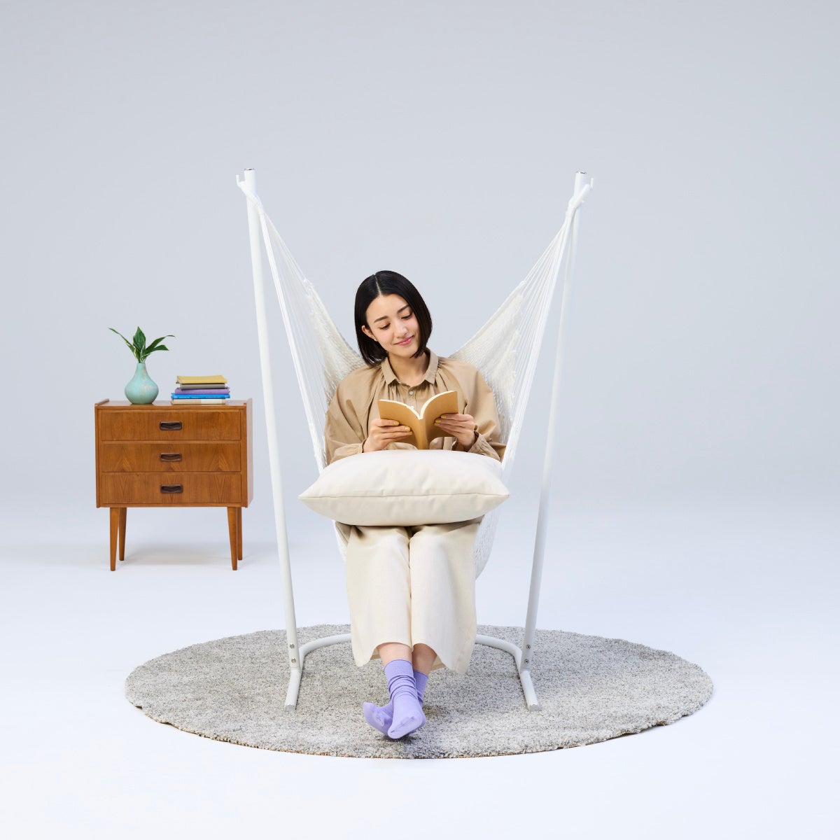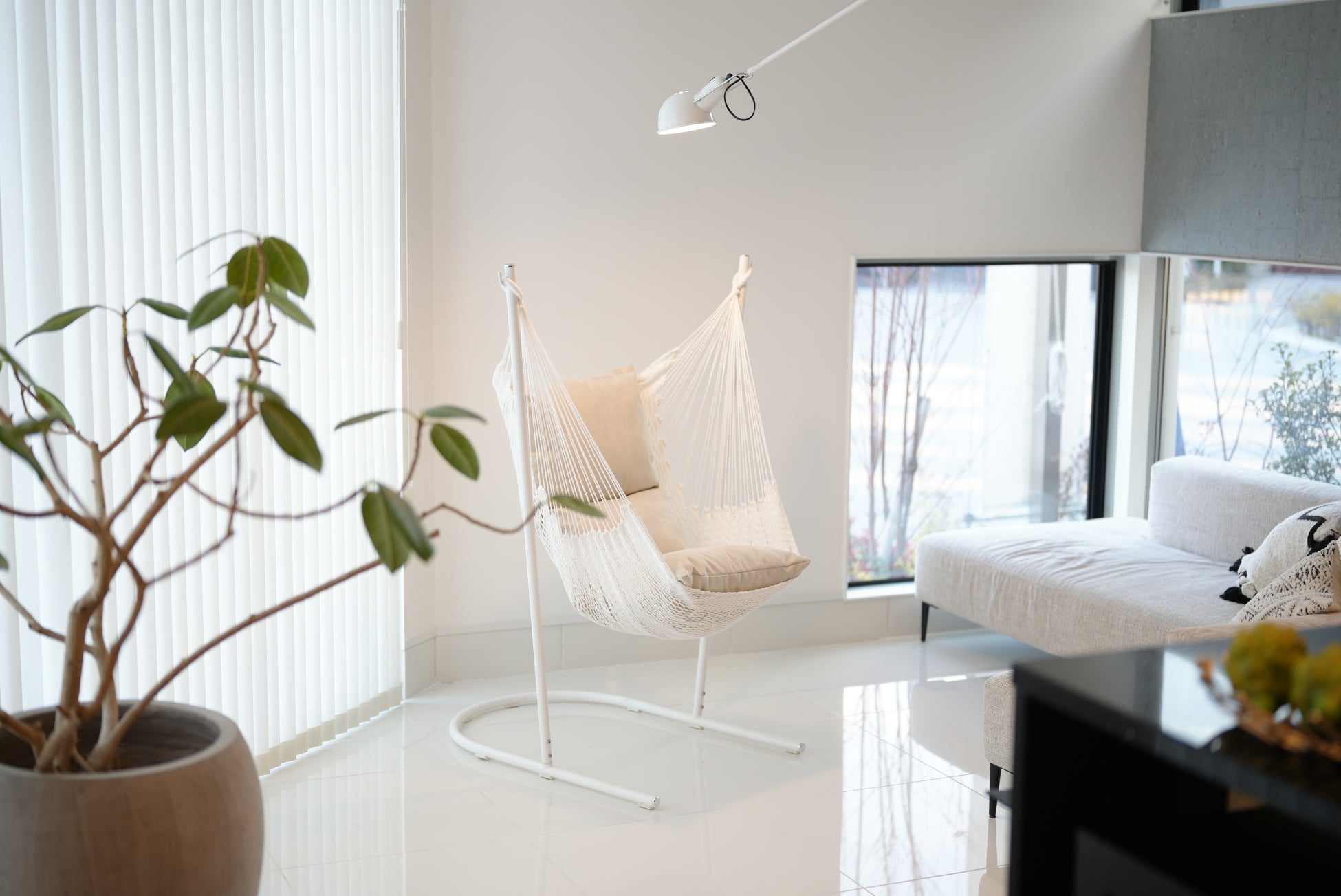 憧れのハンモックライフが身近に!オールホワイトのハンモックチェアで、梅雨のおうち時間をもっと楽しく♪