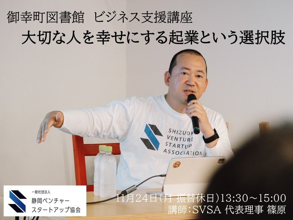 静岡県内のスタートアップ支援および地域経済活性化に取り組む一般社団法人静岡ベンチャースタートアップ協会(所在地:静岡県浜松市、代表理事:篠原 豊、以下SVSA)は、静岡市立御幸町図書館にて開催されるビジネス支援講座「大切な人を幸せにする起業という選択肢」において、代表理事である篠原 豊が講師を務めることをお知らせいたします。