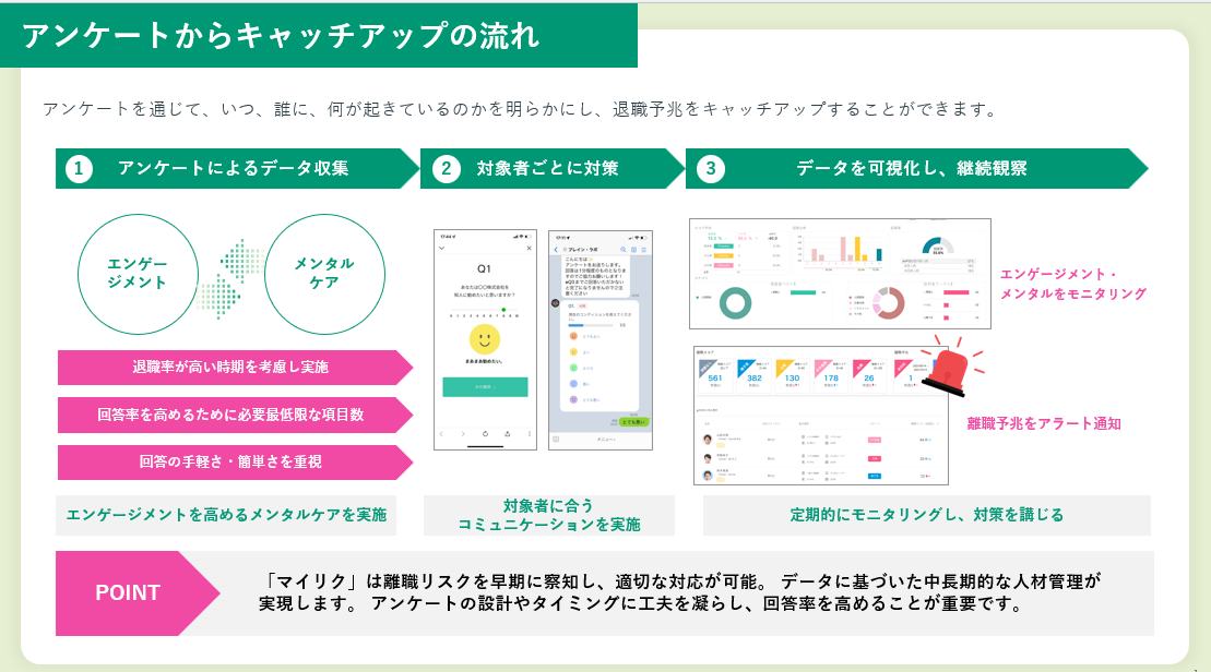 第二部では、ブレイン・ラボが提供する人材マネジメントツール「マイリク」による離職リスクの早期察知と適切なフォローアップの仕組みをご紹介します。