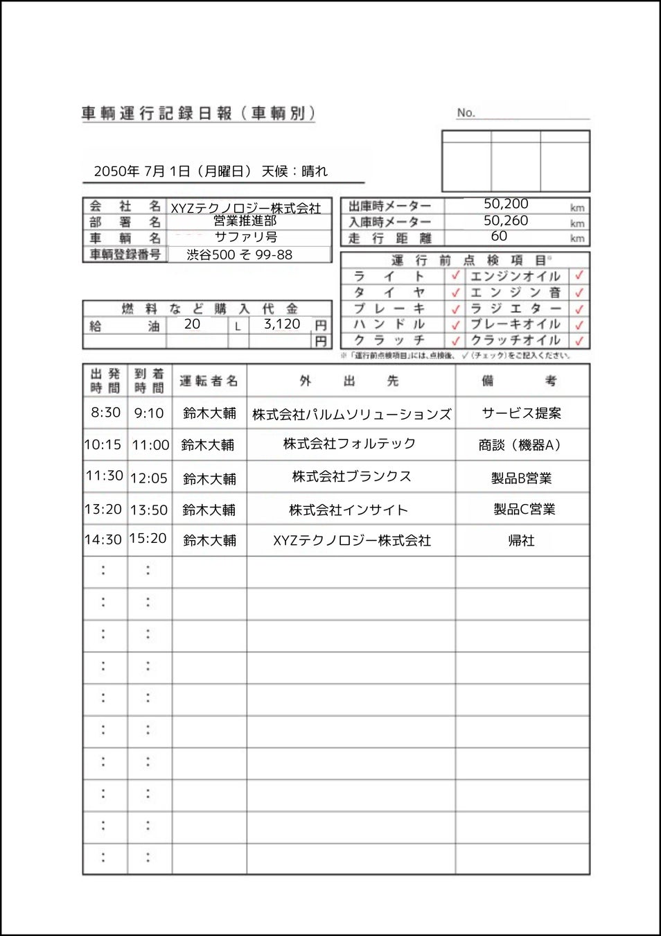 ・運転日報(出発時刻/到着時刻/走行距離/作業内容)
