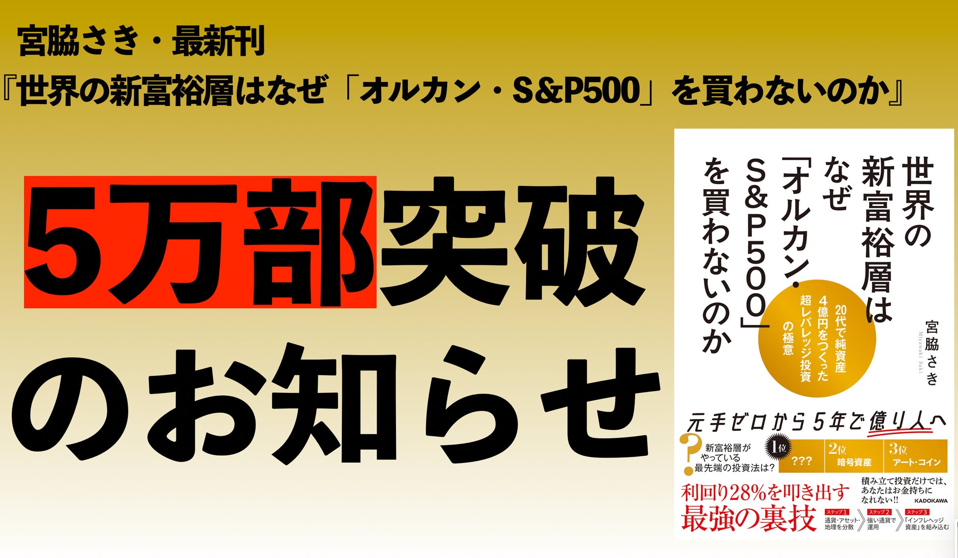 〈5万部突破!〉宮脇さきの新刊『世界の新富裕層はなぜ「オルカン・S&P500」を買わないのか 20代で純資産4億円をつくった超レバレッジ投資の極意』大好評発売中!