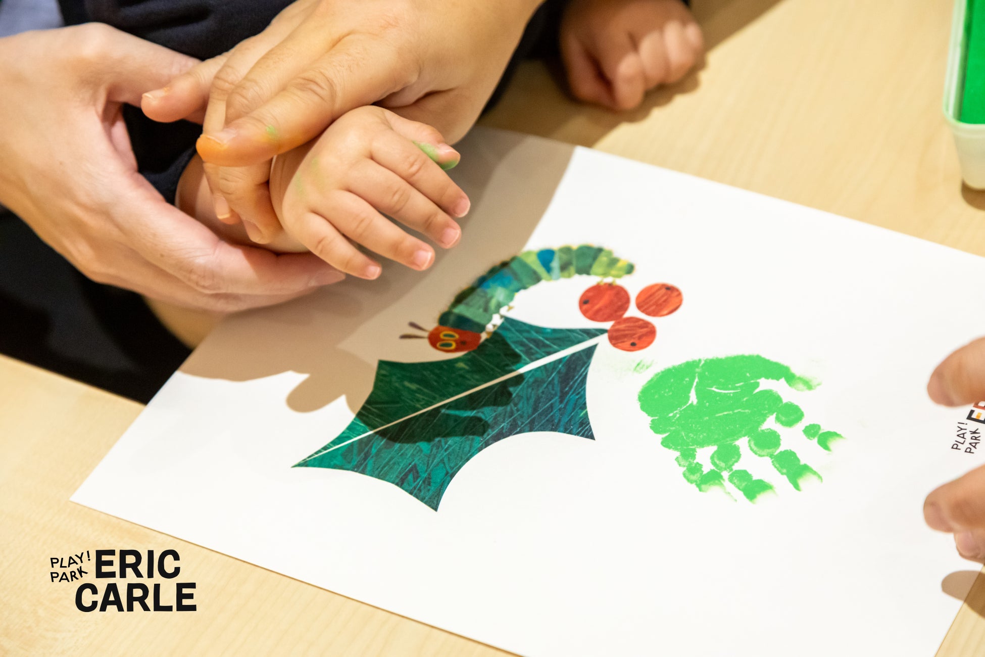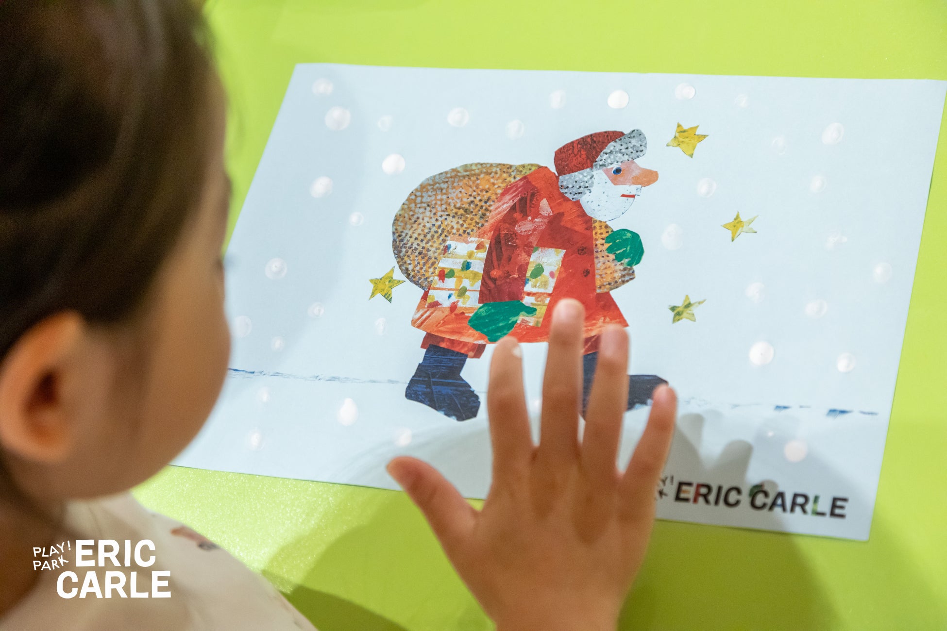エリック・カールのイラストの一部に、手形・足形を押す、人気のワークショップ。「はらぺこホリデー」では、クリスマスと年末年始の期間ごとに、2つのイラストで開催します。お子様の「今」を、思い出に残すことができます。