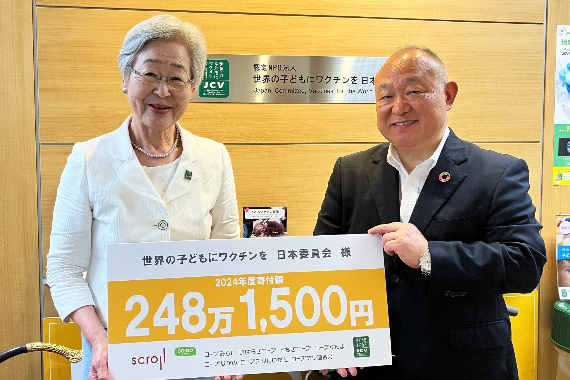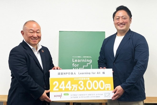 コープデリ生活協同組合連合会(略称:コープデリ連合会、本部:埼玉県さいたま市、代表理事理事長:熊﨑 伸、会員生協:関東信越の6生協)は、株式会社スクロール(本社:静岡県浜松市)とともに展開している「衣料品回収プロジェクト」を通じた2024年度の寄付金として、492万4,500円を「認定NPO法人 世界の子どもにワクチンを 日本委員会」(以下、JCV)と「認定NPO法人Learning for All 」(以下、LFA)に寄付しました。