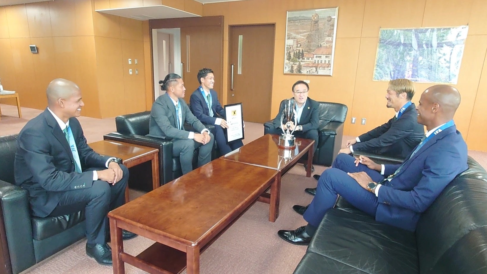 10月6日(月)に、JFA第20回全日本ビーチサッカー大会の報告のため、茂怜羅オズ選手、大場崇晃選手、見山龍之介選手、マテウス・ロペス選手、大槻陽平選手が立川市長を表敬訪問されました。