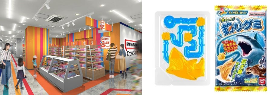「おいしくて楽しい」をコンセプトにしたエンタメ菓子(釣りグミシリーズなど)、キャラクター菓子、そして低単価で高クオリティな食玩(フィギュア、ウエハースシリーズなど)を豊富に取りそろえています。フィギュアなどのサンプルを展示するショーケースを設置し、実際に目で見て楽しむことができる売り場が特徴です。