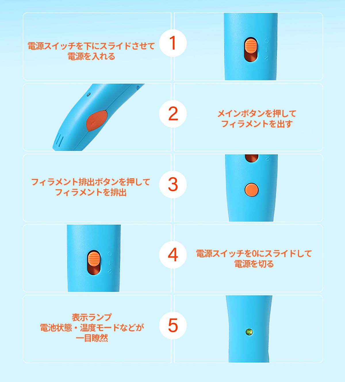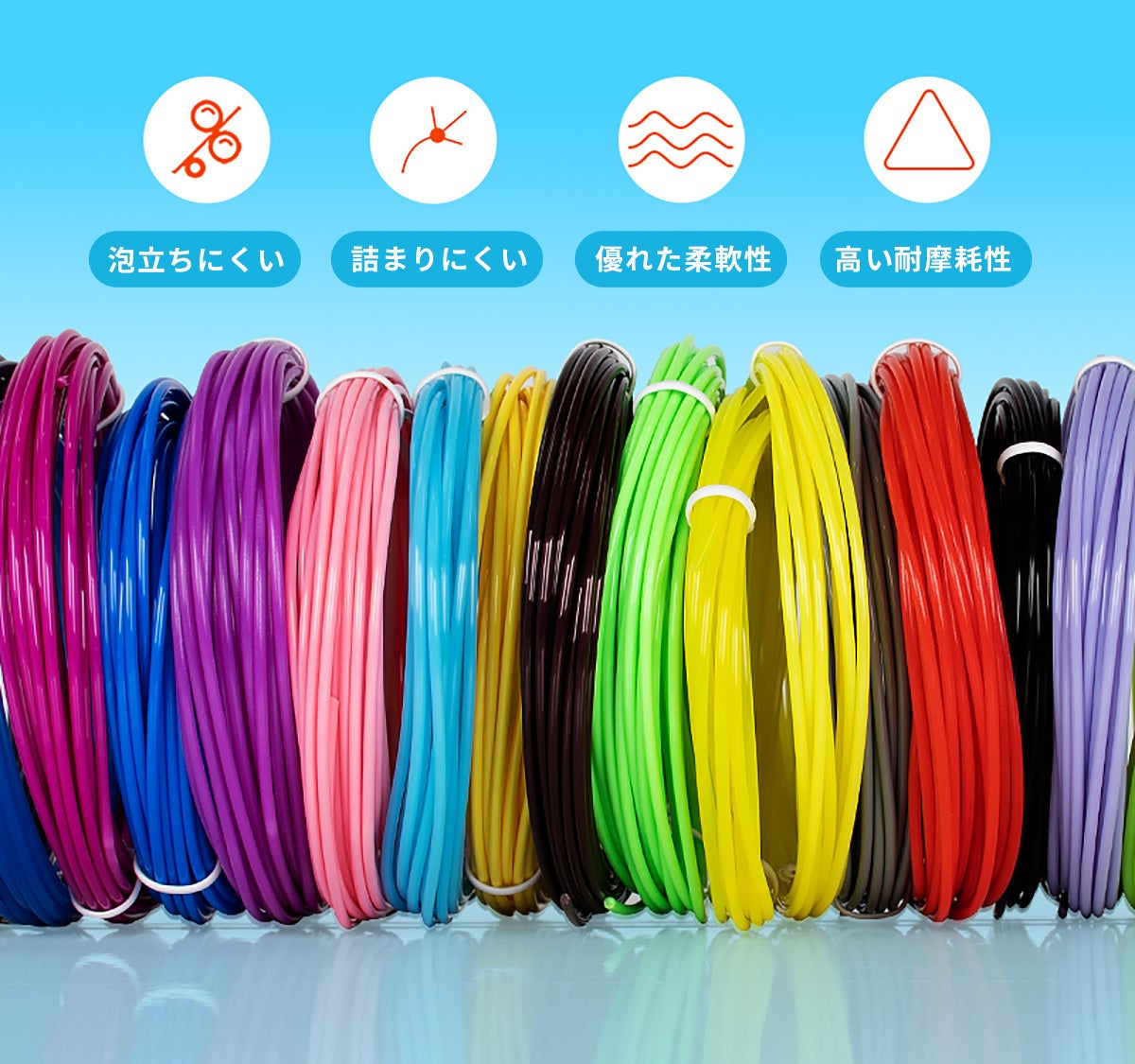 💸高価な専用フィラメントは必要ありません。一般的な低融点のPCLフィラメントに対応しているため、ランニングコストを抑えてたっぷり創作を楽しめます。さらに、PCL素材は無毒で子供でも安全にご利用いただけるのも特徴です。