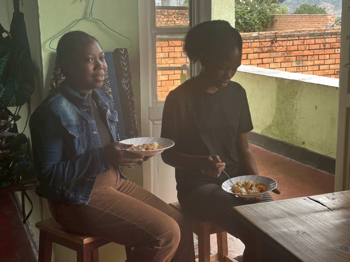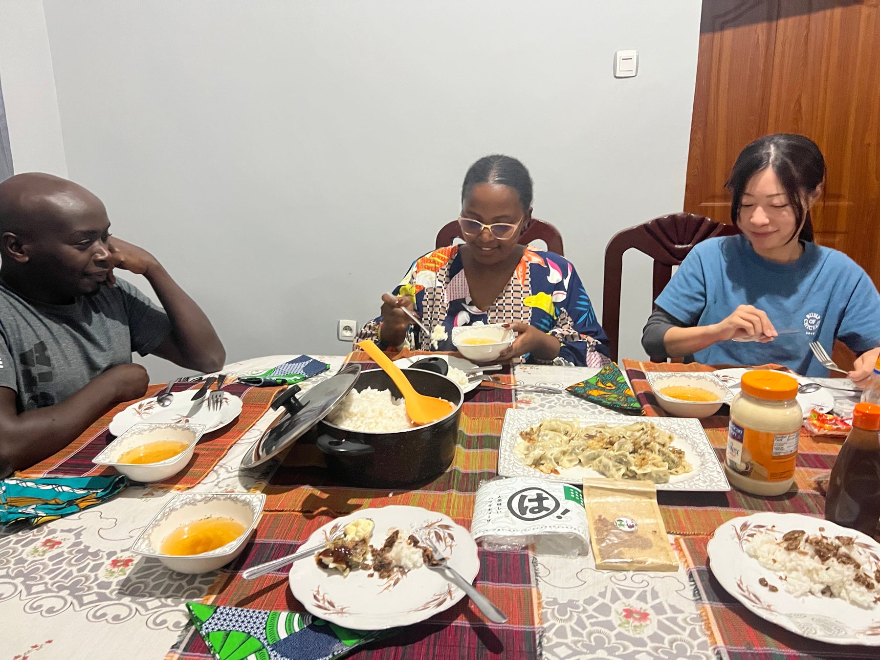 さらに、三島竹島学園のアントレプレナー教育で生まれた「ハマギギョーザ」は、島に自生するハマギを使った“島オリジナル”の一品としてルワンダへ届けられました。およそ1万2千kmの距離を海を越えて運ばれたギョーザは、現地では温かい料理として提供され、子どもたちやジェノサイドを生き延びたサバイバーの人々に「こんなにおいしい料理が、日本の仲間から届くなんて」と大きな感動と笑顔をもたらしました。ルワンダの悲しい歴史と、そこから立ち上がろうとする現在の姿を紹介しながら、「島で育った食の知恵とやさしさが、遠い国の心と暮らしを支える力になる」というメッセージが、子どもたちにもはっきりと伝わる時間となりました。