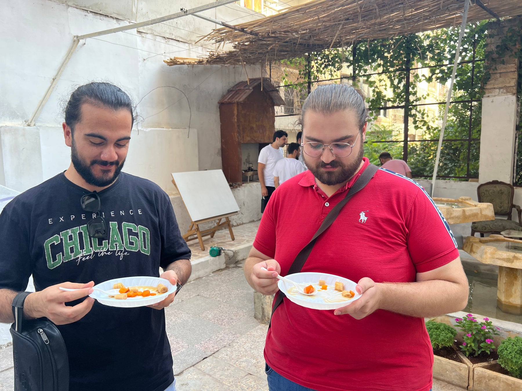 その中で、日本語を学ぶアレッポ大学の学生たちが、竹けん玉を題材に