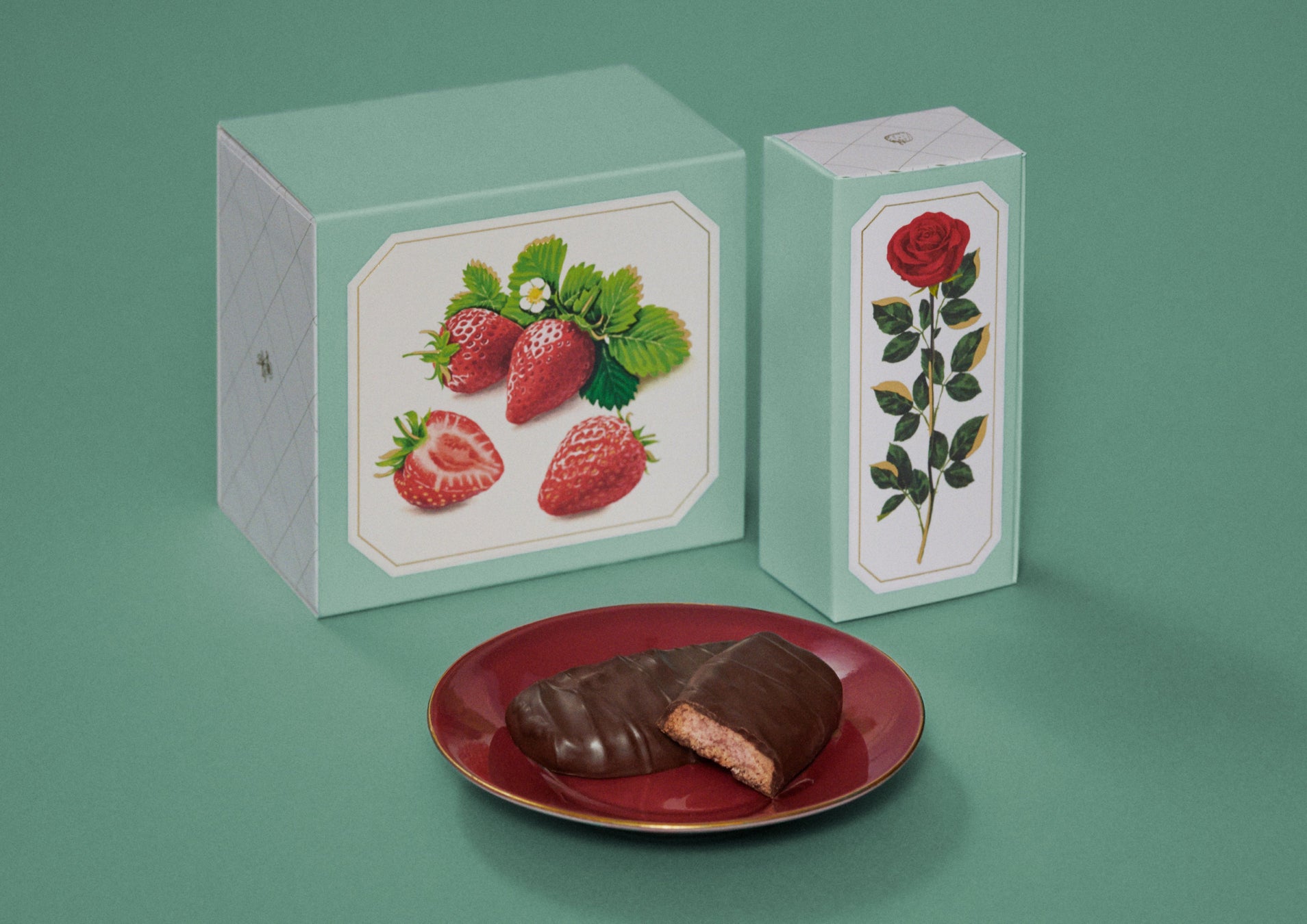 あまおう苺の香りが広がるクッキーと、すっきりとした味わいのスイートチョコレートが織りなす
