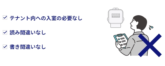 遠隔で自動検針するため、テナント内に入室する必要がありません。