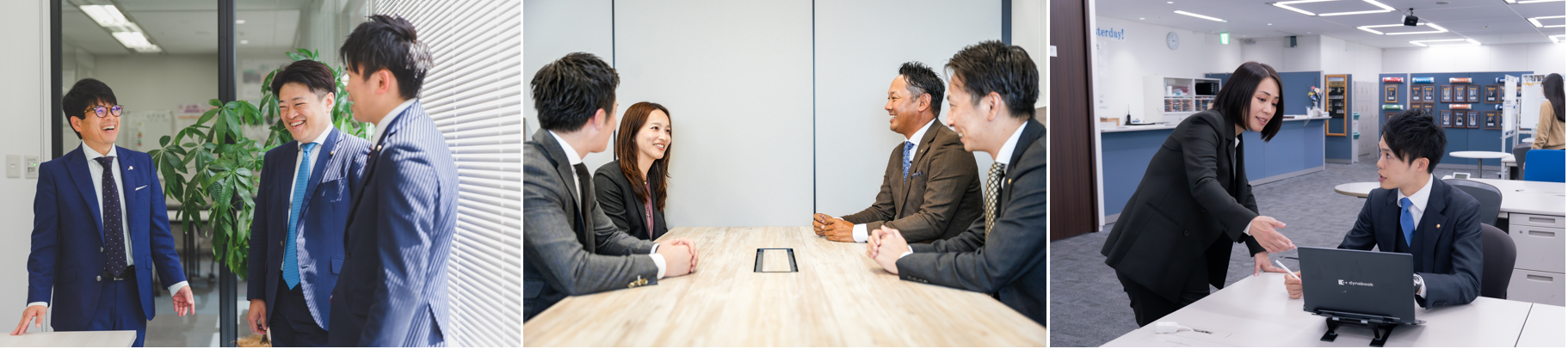 当社では、独自の実践的な教育システムを用いて、生命保険のプロフェッショナルである「ライフプランナー(営業社員)」を育成しています。あわせて、企業理念やパーパスを共有する機会や、自分がなぜこの会社で働くのかを確認する機会を定期的に作っています。そのため全社員が同じ方向を向いて働くことができ、一体感の醸成や モチベーションの向上につながっています。ライフプランナーと内勤社員はそれぞれの役割に誇りを持ち、互いに尊敬し合いながら働いています。